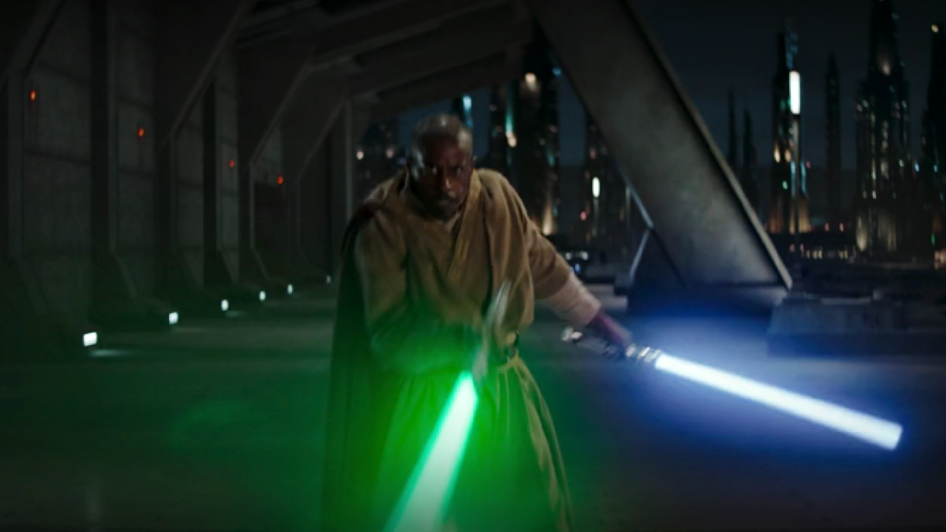 Le retour d’Ahmed Best est d’autant plus satisfaisant à voir à l’œuvre que l’épisode met vraiment l’acteur en avant : il protège le pauvre enfant, il se débarrasse de tous les clones qui se dressent sur son chemin, il brandit deux sabres laser, il utilise la Force, il ne prend pas un seul coup. C’est l’image que l’on se fait du maître Jedi : invincible et désintéressé.