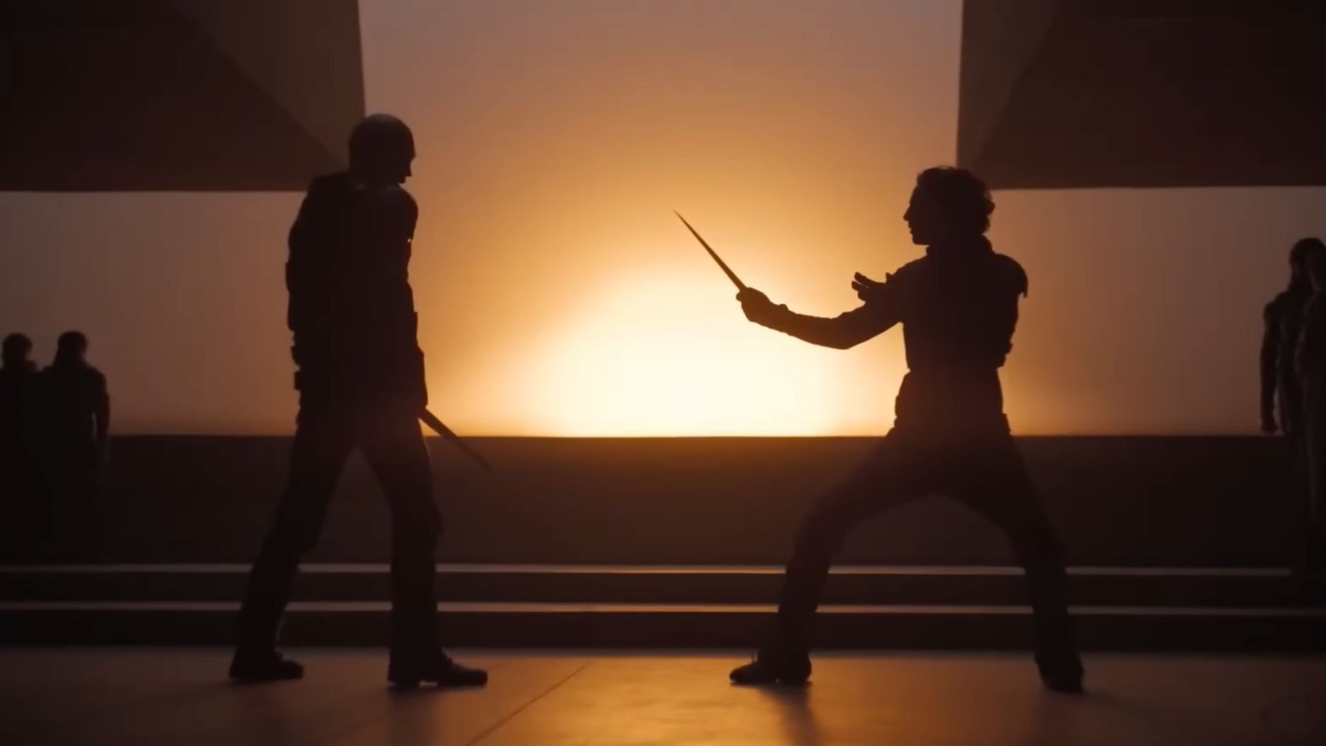 Ce n’est pas tout : on assiste aussi à un extrait du combat entre Paul Atréides et Feyd-Rautha. C’est ni plus ni moins que… le combat final du livre. Lequel se termine mal pour l’un des deux protagonistes.