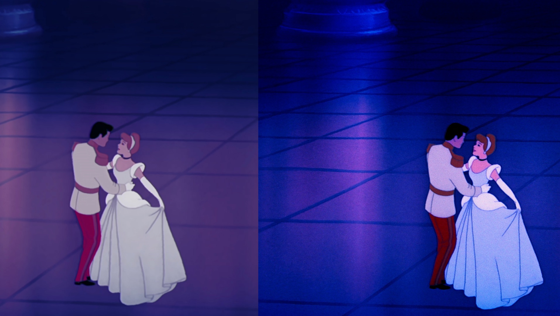 Certains vont se demander comment les couleurs d’un film d’animation peuvent évoluer si fortement avec le temps. Kevin Schaeffer, directeur de la restauration de Walt Disney Studios, n’a aucune explication claire à fournir. Mais, il a une petite idée sur la question : Cendrillon a connu d’autres restaurations par le passé et, à force de toujours être réinterprété, parfois à partir de copies plus récentes, ses couleurs ont été modifiées, voire dénaturées. Dans le cas de cette nouvelle version de Cendrillon, Disney a pu remettre la main sur la copie originale des années 50, soit la plus exacte possible en matière de rendu.