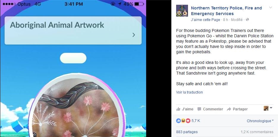 Face à cette situation pour moins incongrue, les services de secours du Territoire du Nord ont dû se fendre d’un message sur Facebook pour expliquer aux joueurs qu’il n’est pas du tout nécessaire d’entrer dans le commissariat pour obtenir les objets désirés. Il suffit juste de se trouver à proximité.