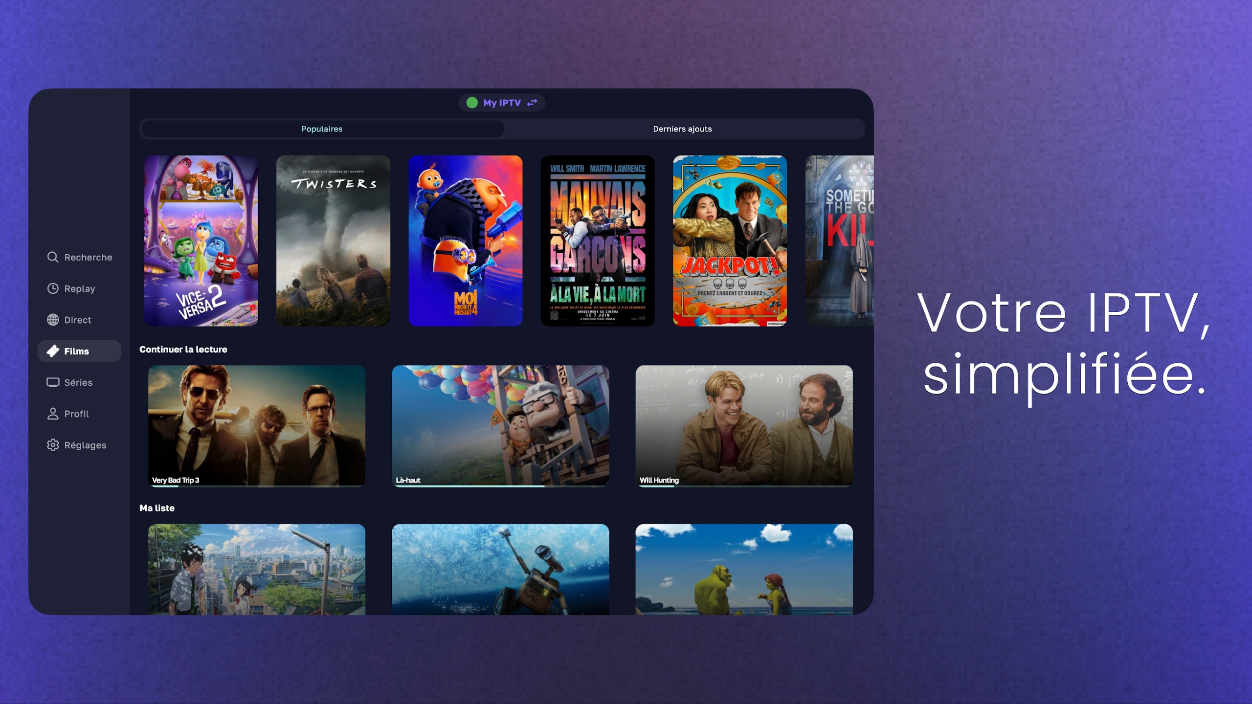 Et si vous souhaitez profiter de votre contenu IPTV sur grand écran, sachez que l’application est compatible avec Android, Apple TV, Android TV et Amazon Fire TV, et prend en charge l’affichage sur grand écran.