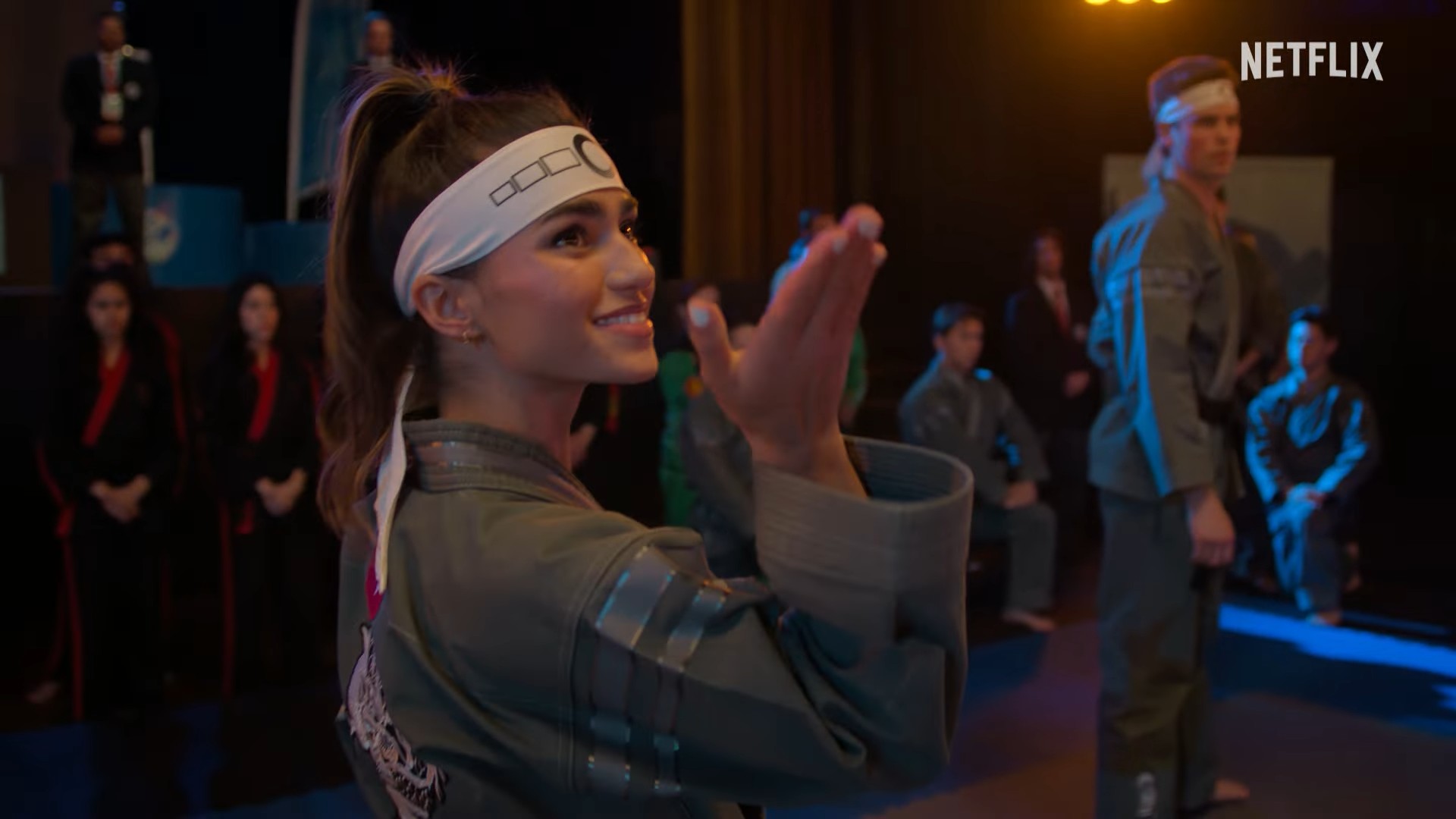 Ces deux membres des Iron Dragons se nomment Zara et Axel et ils promettent d’être au centre de la partie 2. D’ailleurs, l’actrice qui interprète Zara dans la série Netflix n’est autre que la redoutable Rayna Vallandingham : experte en arts martiaux divers et variés, vous l’avez sans doute déjà croisée sur les réseaux sociaux car cette ceinture noire de taekwondo — à seulement 21 ans — est suivie par plus de deux millions de personnes et sa vidéo la plus regardée compte 43 millions de vues. Son personnage s’annonce implacable.