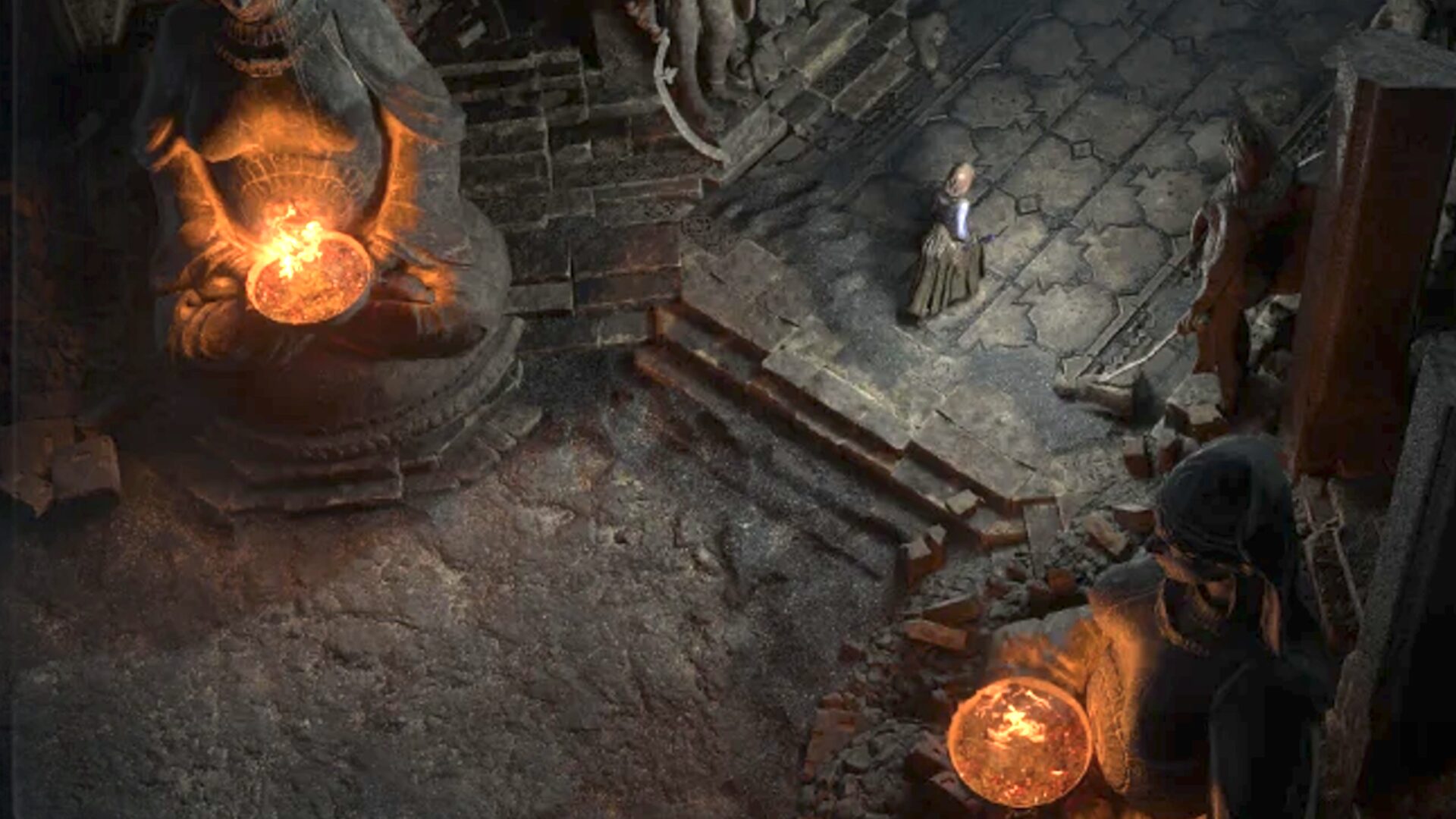 Néanmoins, Path to Exile 2 ne procure pas du tout le même plaisir. Tout au moins, il ne tire pas du tout sur les mêmes leviers. Dans Diablo 4, c’est la course à la puissance, régie par un équipement toujours plus précieux, qui prime. Dans Path to Exile 2, c’est le sentiment de fierté qui perdure après s’être débarrassé d’un boss qui a passé la demi-heure précédente à nous apprendre la vie. C’est là où la filiation avec Elden Ring, disons plutôt Dark Souls, se découvre. Les ennemis, puissants et impitoyables, ne laissent jamais vraiment la place au répit, même les hordes de monstres ordinaires sont dangereuses. Il faut savoir bouger, esquiver, anticiper, en jouant avec prudence. Chaque affrontement devient une mini-épreuve, où la moindre erreur peut devenir fatale, surtout avec un personnage à la survivabilité légère.