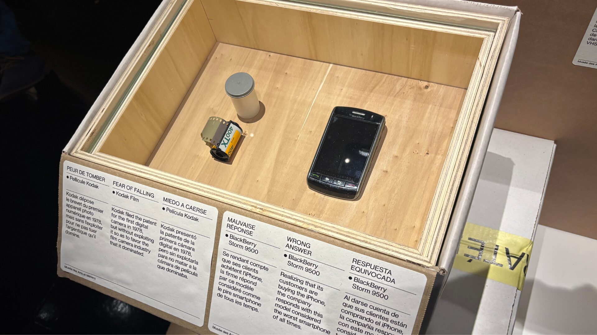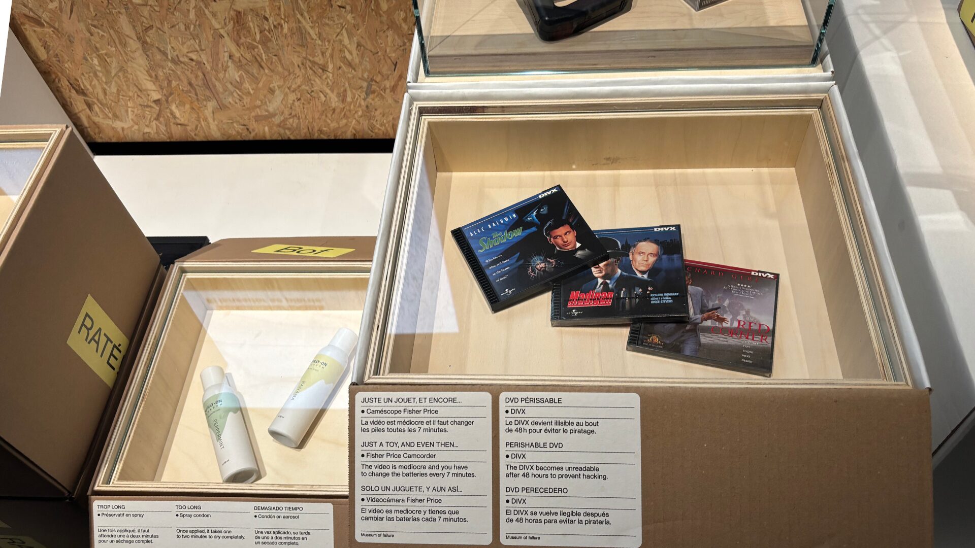 Il y a d’abord les échecs liés à la dangerosité du produit, comme le Boeing 737 Max, puis ceux dus à un simple défaut de conception — à l’image du caméscope Fisher Price, dont la vidéo est médiocre et les piles à remplacer toutes les sept minutes. Ou du préservatif en spray, tout aussi peu pratique, exposé juste à côté.