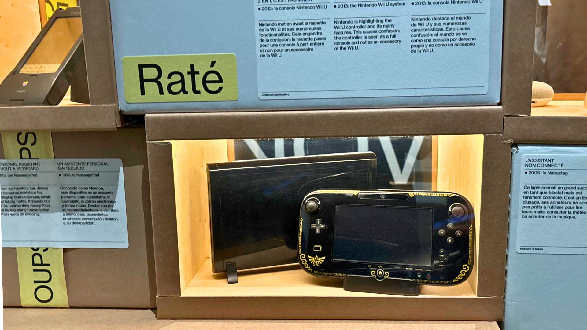 Le parcours de l’exposition s’articule en quatre grandes sections thématiques : Oups !, Raté — mode d’emploi, Les raisons de la galère et Mieux rater pour innover. On y navigue en s’interrogeant : pourquoi ces produits n’ont-ils pas marché ? quel a été leur impact après coup ? et que nous disent-ils, finalement, de notre rapport à l’innovation ?