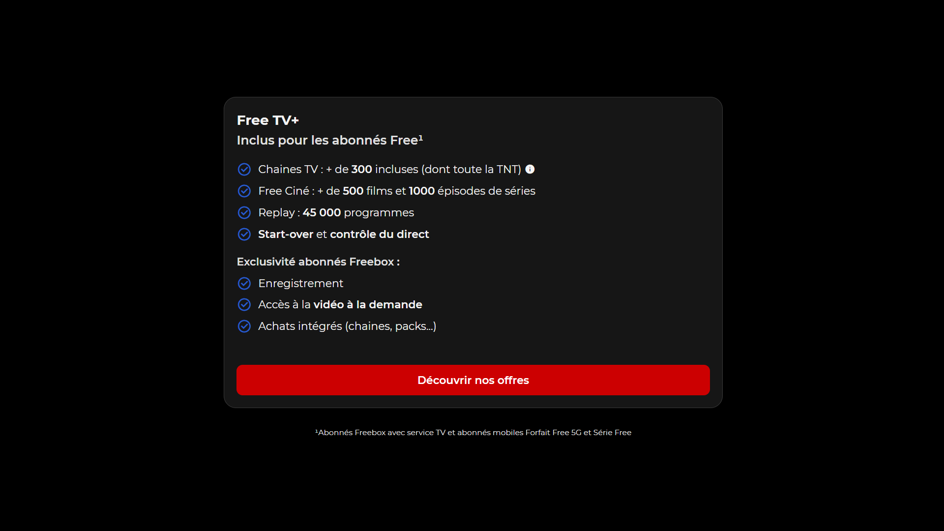 Pour ceux qui veulent aller plus loin, l’opérateur propose Free TV+, une option payante à 5,99 €/mois (0,99 €/mois la première année), incluse gratuitement pour les abonnés Freebox et certains clients Free Mobile. Elle débloque plus de 300 chaînes, 250 films et 700 épisodes supplémentaires.