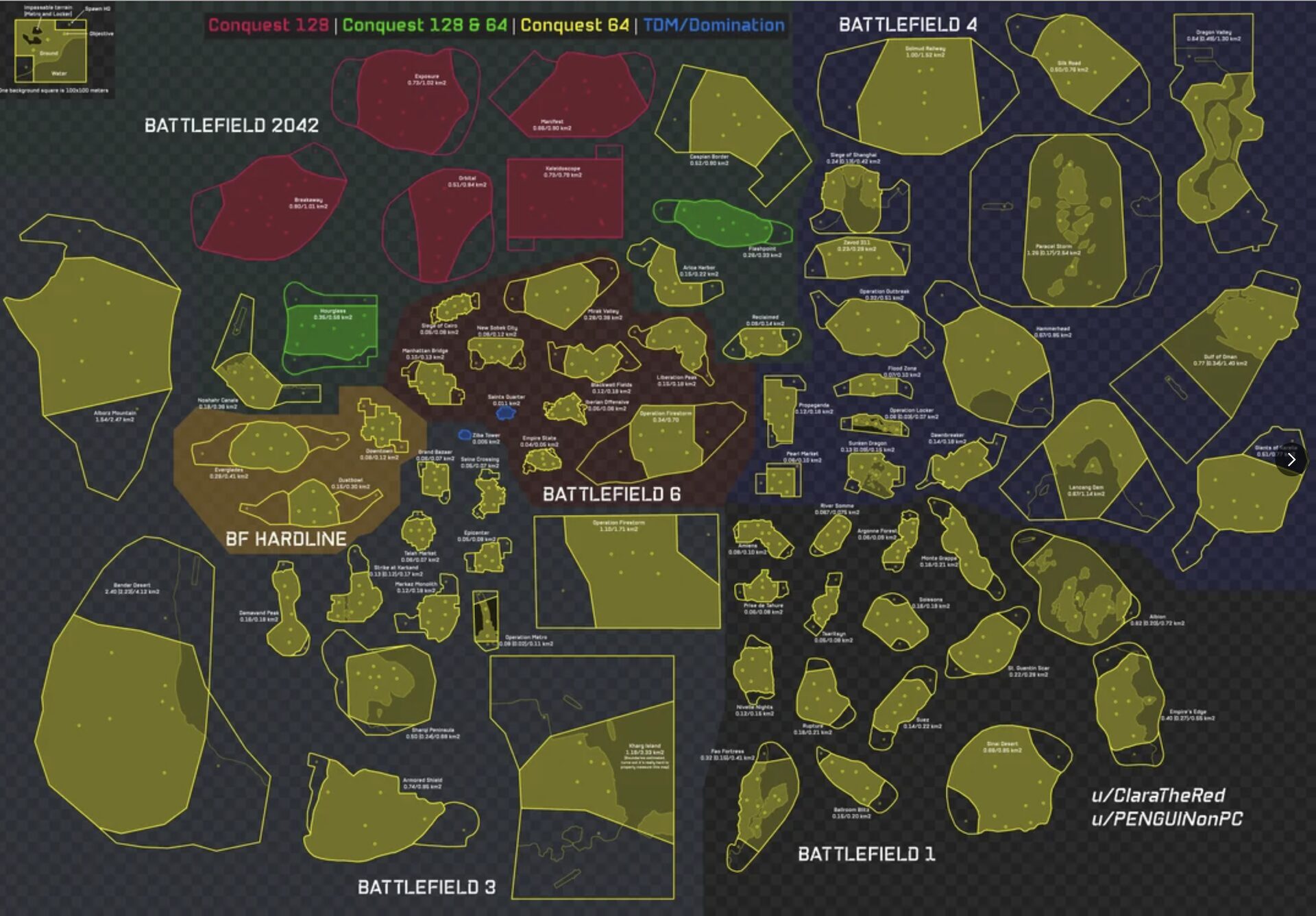 C’est un sujet qui revient à chaque épisode : la taille des cartes de Battlefield 6 est-elle satisfaisante ? Dès la bêta, certains doutes avaient été partagés quant à leur étroitesse, d’autant que le jeu veut faire la part belle aux véhicules, qui peuvent être clé dans la bataille. Membre investie de la communauté, ClaraTheRed a étudié le sujet avec précision afin de comparer les cartes de tous les épisodes de la saga.