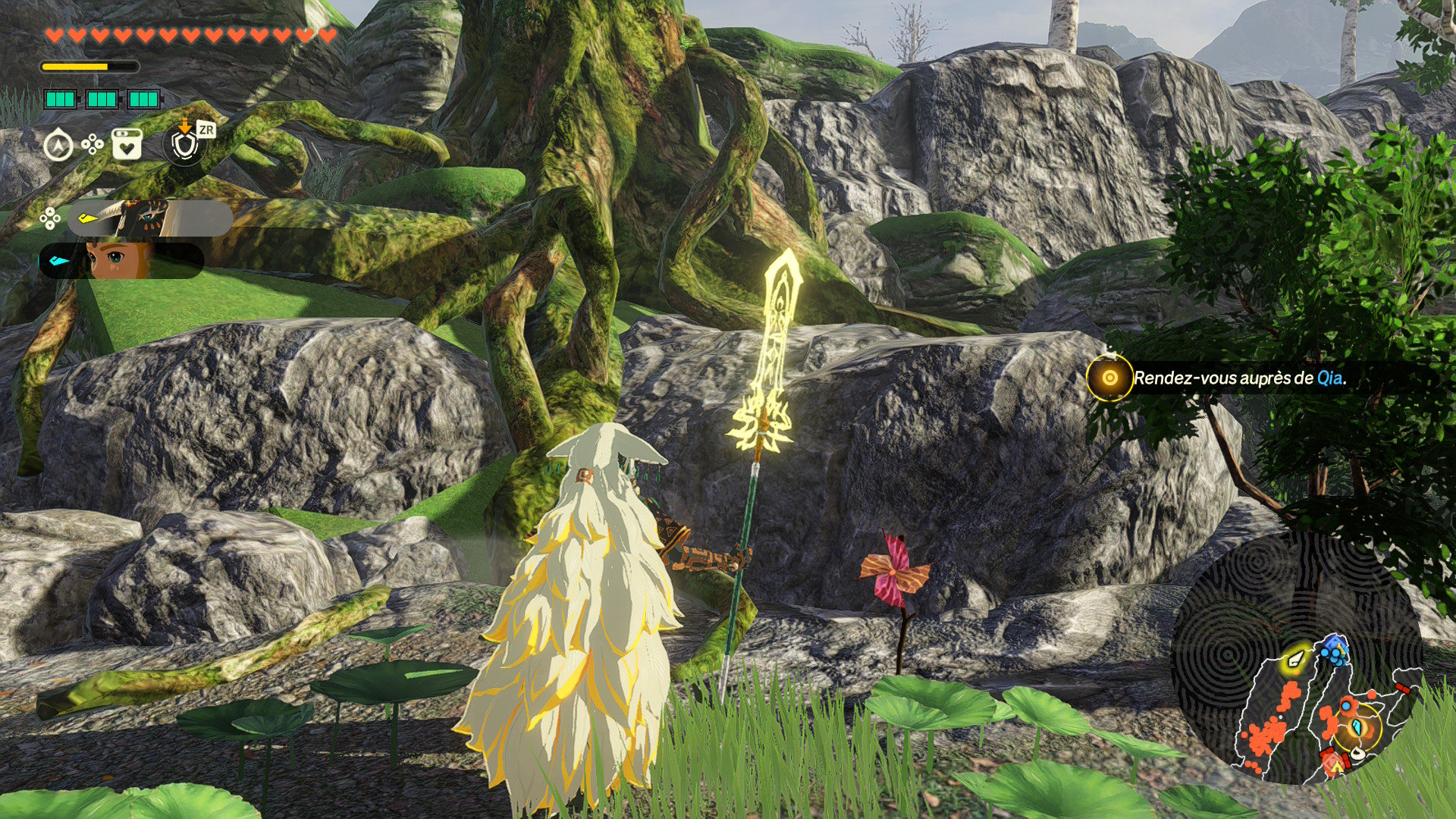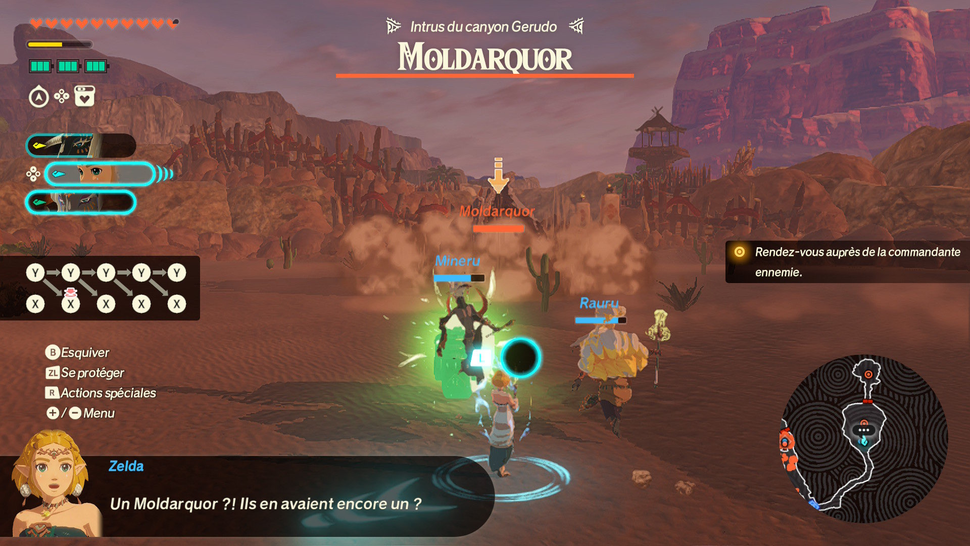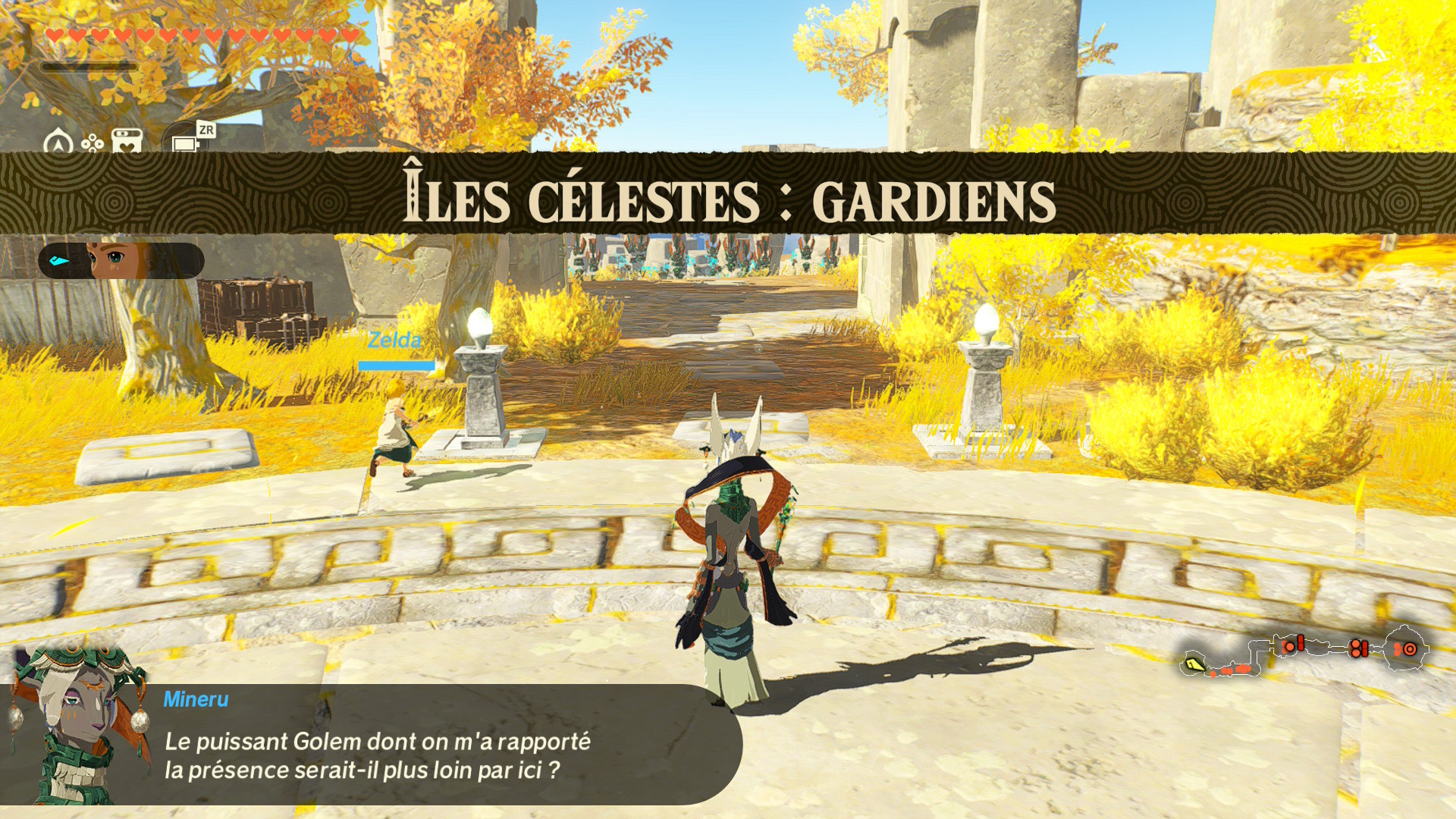Ce nouvel opus se voulant canonique, il s’inscrit dans une temporalité précise, celle du séjour de Zelda dans un passé que nous content les souvenirs sous forme de cinématiques à débloquer dans The Legend of Zelda: Tears of the Kingdom, et qui en expliquent le scénario. Pour cette raison, Link est absent des débats (il n’apparaît d’ailleurs pas sur la jaquette du jeu !) et Zelda est le premier personnage jouable, vite rejointe par le roi Rauru et sa sœur Mineru, derniers représentants du peuple Soneau. S’ensuit une quinzaine d’autres appartenant aux diverses tribus d’Hyrule, dont une grosse moitié d’inédits, et quelques surprises originales dont nous aurions aimé vous garder la surprise si la bande-annonce diffusée deux semaines avant la sortie n’avait pas tout spoilé. Puisque ce n’est du coup plus un secret pour personne : oui, on peut incarner un Korogu parmi les nouveaux personnages jouables et en plus, il parle. D’ailleurs, sans grande surprise, on retrouve avec plaisir les mêmes doubleurs français de qualité que dans les épisodes Switch de la franchise.