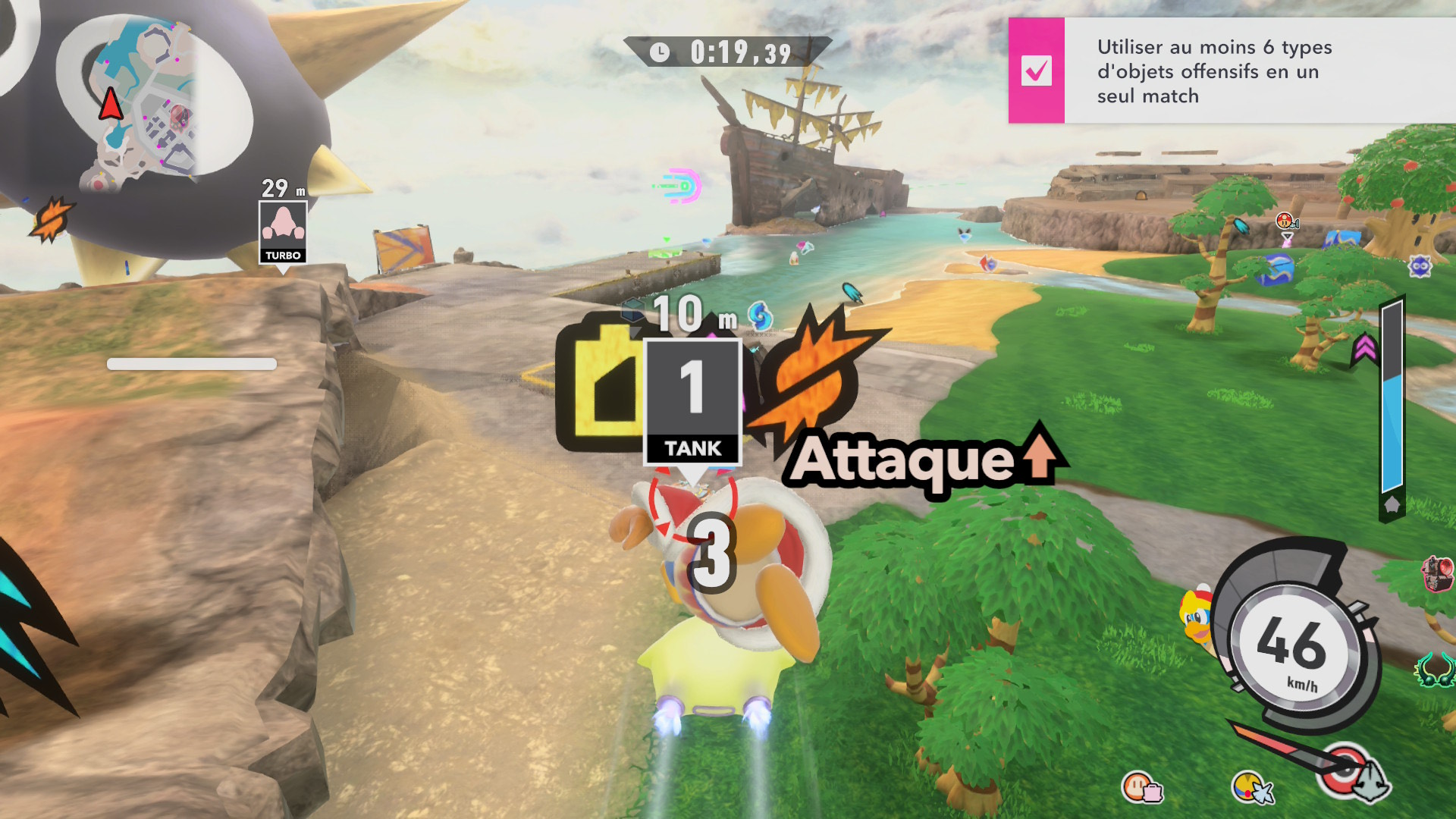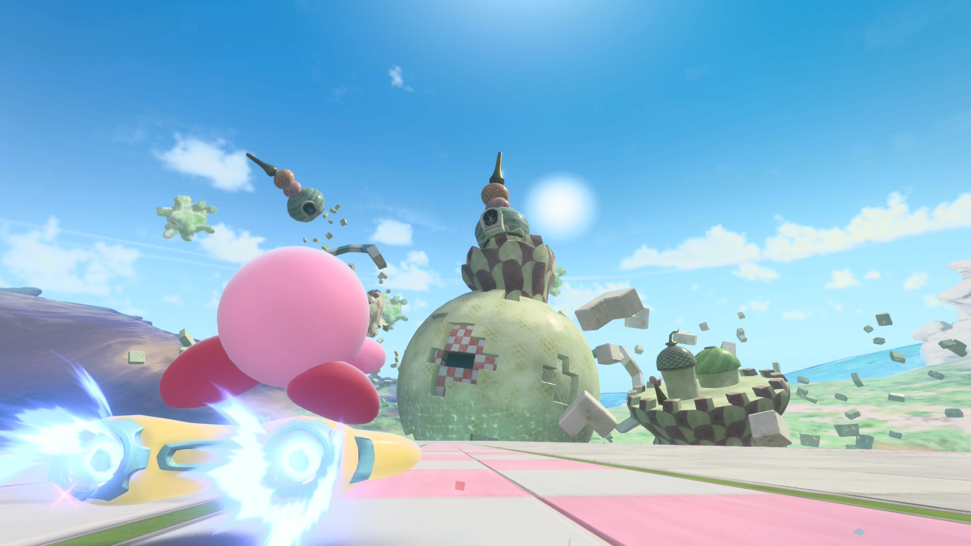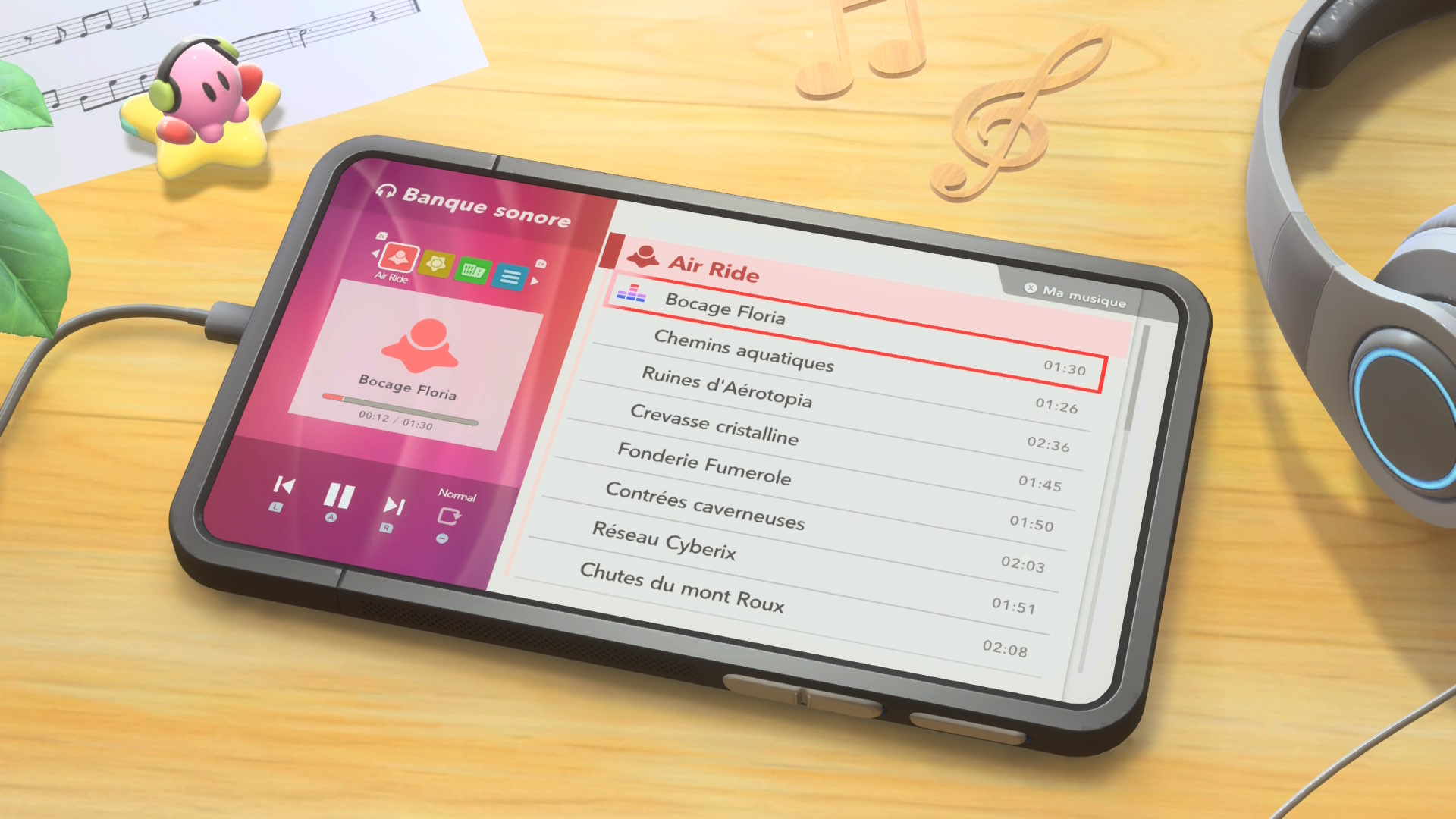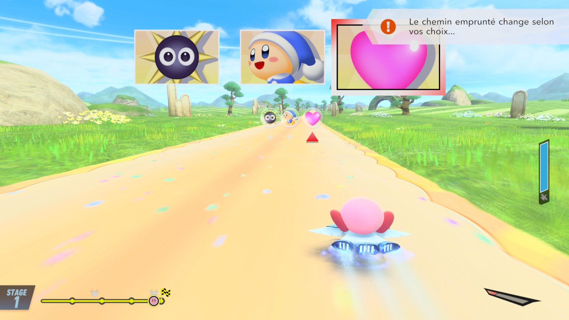 Ah, et vu qu’on ne l’a pas encore dit : en plus d’être fluide en toutes circonstances, Kirby Air Riders est franchement beau, et il suffit de passer quelques sessions dessus sur un écran 4K ou bien en nomade pour comprendre que la première Switch aurait peut-être eu du mal à le faire tourner avec autant d’aisance. Quant à sa bande son, elle alterne entre compositions originales tous plus plaisantes et mémorables les unes que les autres, et réorchestrations de thèmes plus ou moins connus de la licence, y compris certains tirés du dernier opus en date (l’excellent Kirby et le Monde Oublié). En termes de fan-service et de surprises en tous genres, les fans de la petite boule rose sont évidemment gâtés, mais le contraire aurait été plus que surprenant.