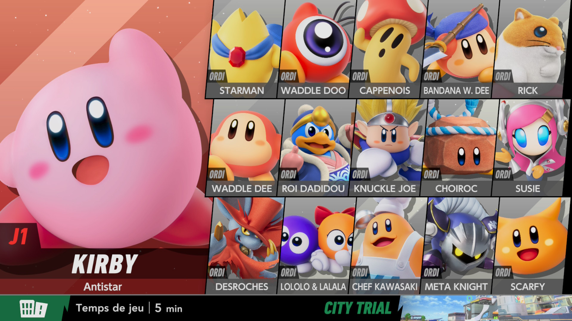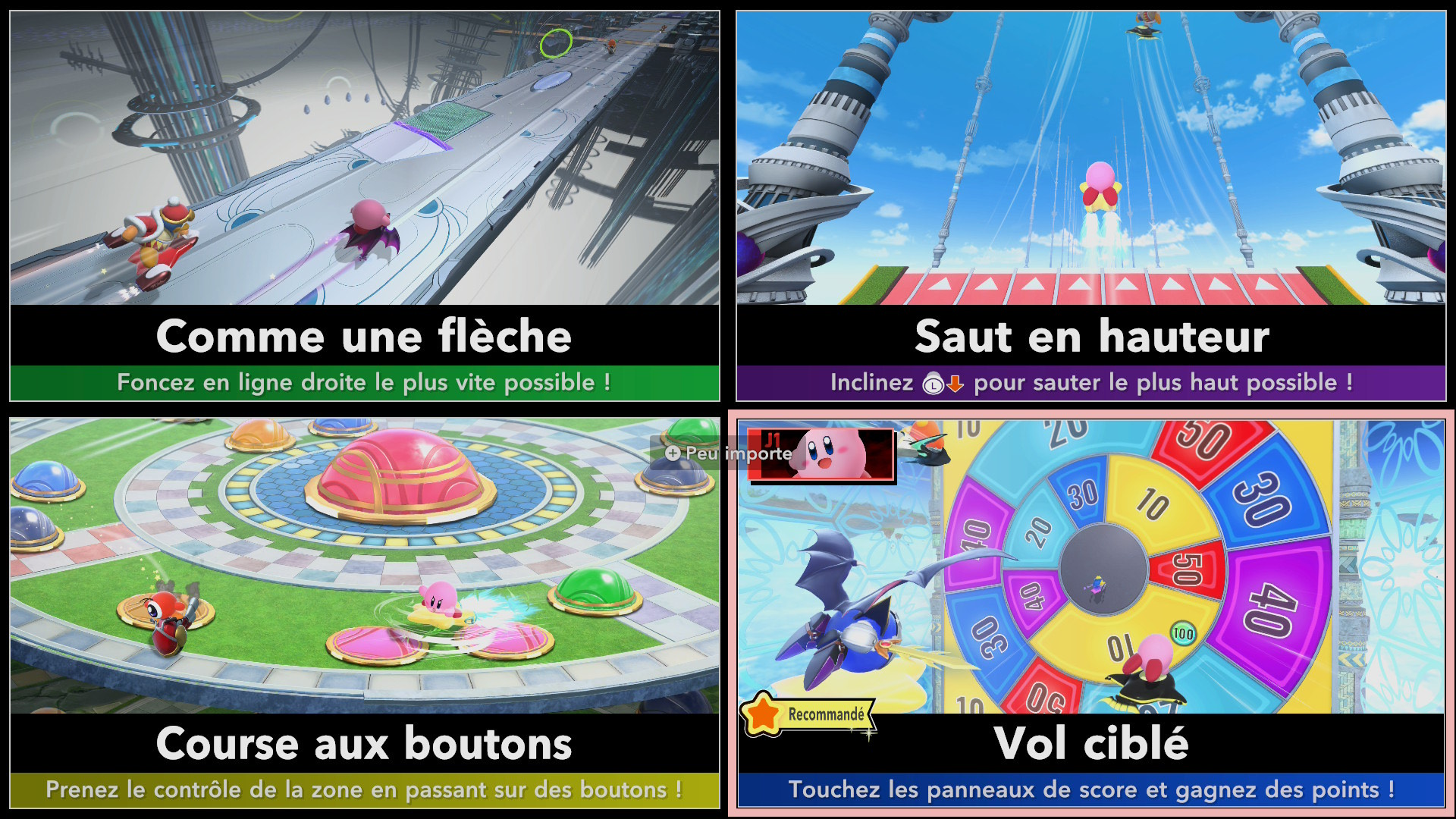 Chacun de ces mini-jeux est bien sûr basé un minimum sur le pilotage, mais potentiellement sur un aspect versus fighting hyper nerveux, ou bien une notion d’adresse visant à conduire mais aussi à savoir faire évoluer son véhicule flottant dans les airs. Il y a clairement une vibe Mario Party dans une bonne partie de ces mini-jeux (sur lesquels il est possible de s’entraîner individuellement, avec évidemment des records enregistrés qui poussent à s’améliorer). À une différence près : une énergie folle se dégage de n’importe quelle phase de jeu. Les 60 images par seconde que sa philosophie d’ensemble exige sont constantes quelle que soit la situation, même à quatre en écran splitté (« prends ça, Mario Kart World », épisode 46), et cela le rend ultra vivace. À aucun moment, Kirby Air Riders ne semble vouloir être chill, y compris dans ses menus pourtant géniaux en terme d’ergonomie, et dont on a l’impression de ne jamais faire complètement le tour tant ils regorgent de subtilités, utiles ou non (on cherche encore à quoi servent les bonbons).