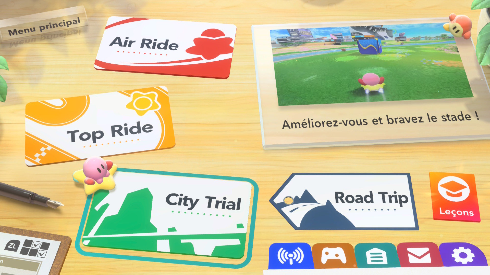 Au fil des missions, on améliore les capacités du véhicule que l’on retrouve dans City Trial, offrant une vague dimension light-RPG à la progression du joueur. Ces missions n’étant ni plus ni moins que des courses en mode Air Ride ou Top Ride, ou bien des défis en provenance de City Trial, ce mode constitue une espèce de pot-pourri que nous avons considéré comme absolument parfait pour découvrir en détail le contenu démesurément riche d’un jeu au renouvellement constant. Nous vous recommandons vivement de profiter de ce story mode une fois que vous aurez coché toutes les cases de l’incontournable mode Leçons, qui n’existait pas dans Kirby Air Ride en 2003 et qui montre à quel point son remake spirituel a assimilé la nécessité de se faire comprendre par le plus grand nombre.