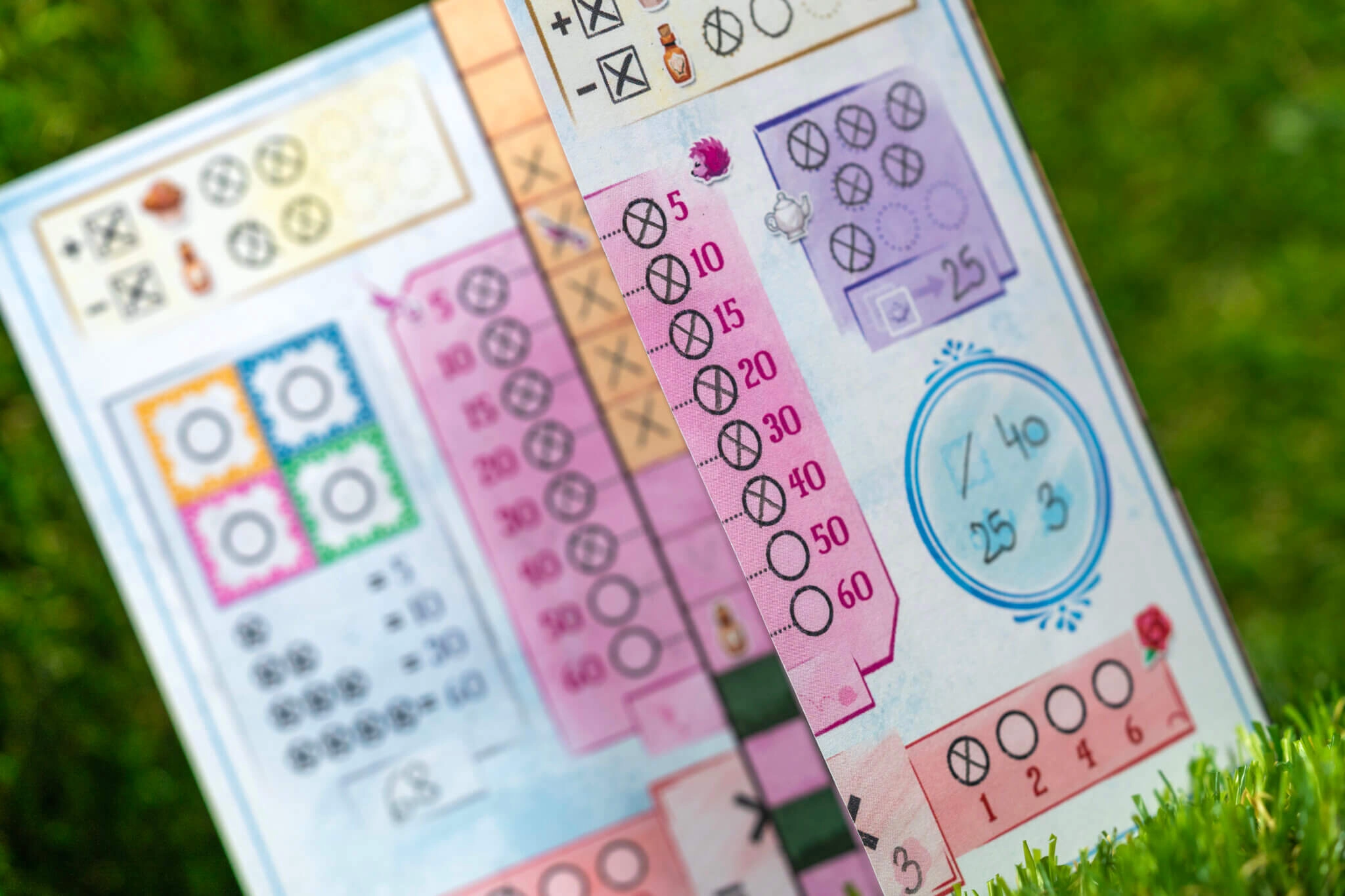 La partie s’achève lorsque toutes les cartes ont été jouées. On procède alors au décompte final, et c’est là que la mécanique du recto verso prend tout son sens : certains points ne sont marqués que d’un côté, tandis que d’autres dépendent de la combinaison des deux faces. En repliant la feuille, on constate que les scores se combinent, parfois par addition, parfois par multiplication. Mieux vaut donc viser deux résultats équilibrés plutôt qu’un seul côté flamboyant.