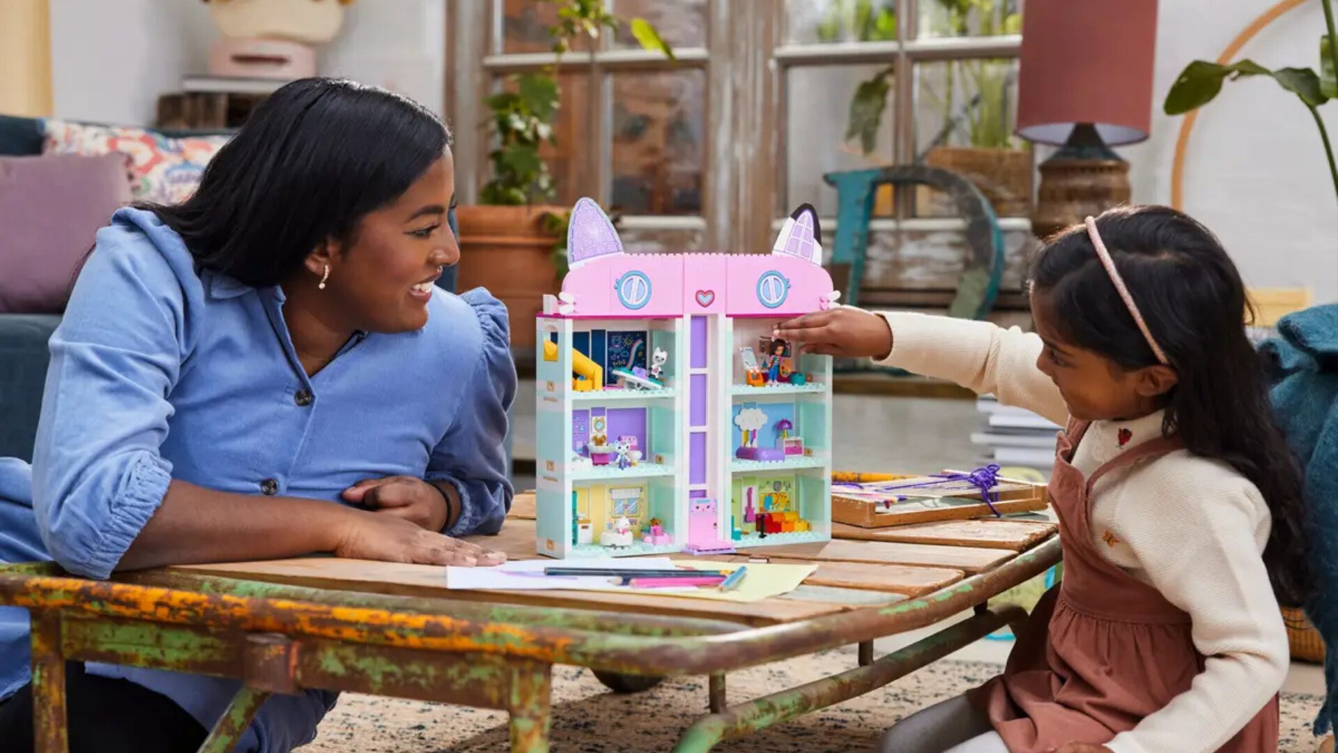 Le set La maison magique de Gabby est destiné aux jeunes fans de la série de DreamWorks Animation, diffusée sur Netflix. Cette réplique de la maison de poupée inclut huit pièces et un ascenseur qui monte et descend, ainsi que plusieurs personnages de la série : Gabby, Pandy, P’tichou et Marine. De nombreux accessoires sont aussi de la partie. La maison magique mesure plus de 34 cm de haut, 31 cm de large et 9 cm de profondeur et se compose de 498 pièces.