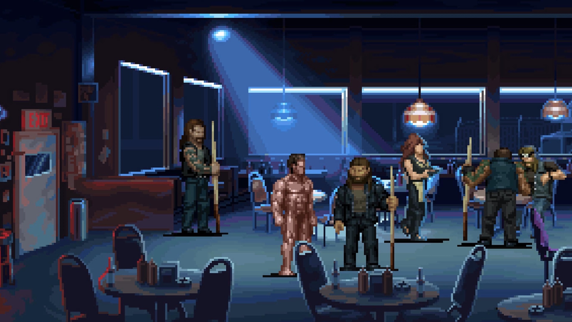 Terminator 2D: No Fate se permet même de rendre « mignon » certains passages d’un film profondément violent et mature. On pense à la scène où le T-800 arrive nu dans un bar pour récupérer des vêtements. Dans le film, la musculature d’Arnold Schwarzenegger impressionne. Dans le jeu vidéo, c’est beaucoup moins le cas avec le rendu en pixel art. On peut aussi faire ce constat pour le T-1000, terriblement effrayant dans Terminator 2, et un peu plus attachant — mais pas trop non plus — dans Terminator 2D: No Fate. Le jeu adoucit un peu le ton, qui reste quand même apocalyptique.