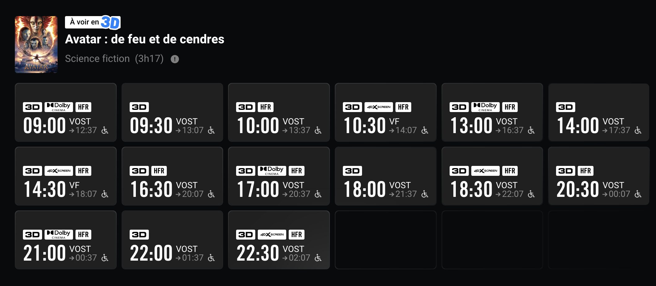 Lors de la sortie d’Avatar 2, le match entre IMAX et Dolby Cinema était serré. Pour ce troisième volet appelé De feu et de cendres, la balance penche nettement en faveur du Dolby Cinema. Pourquoi ? Parce que la gestion de la lumière est essentielle dans ce nouveau volet, surtout en 3D. La preuve s’il en fallait une : James Cameron a choisi le Dolby Cinema pour les avant-premières de son film.