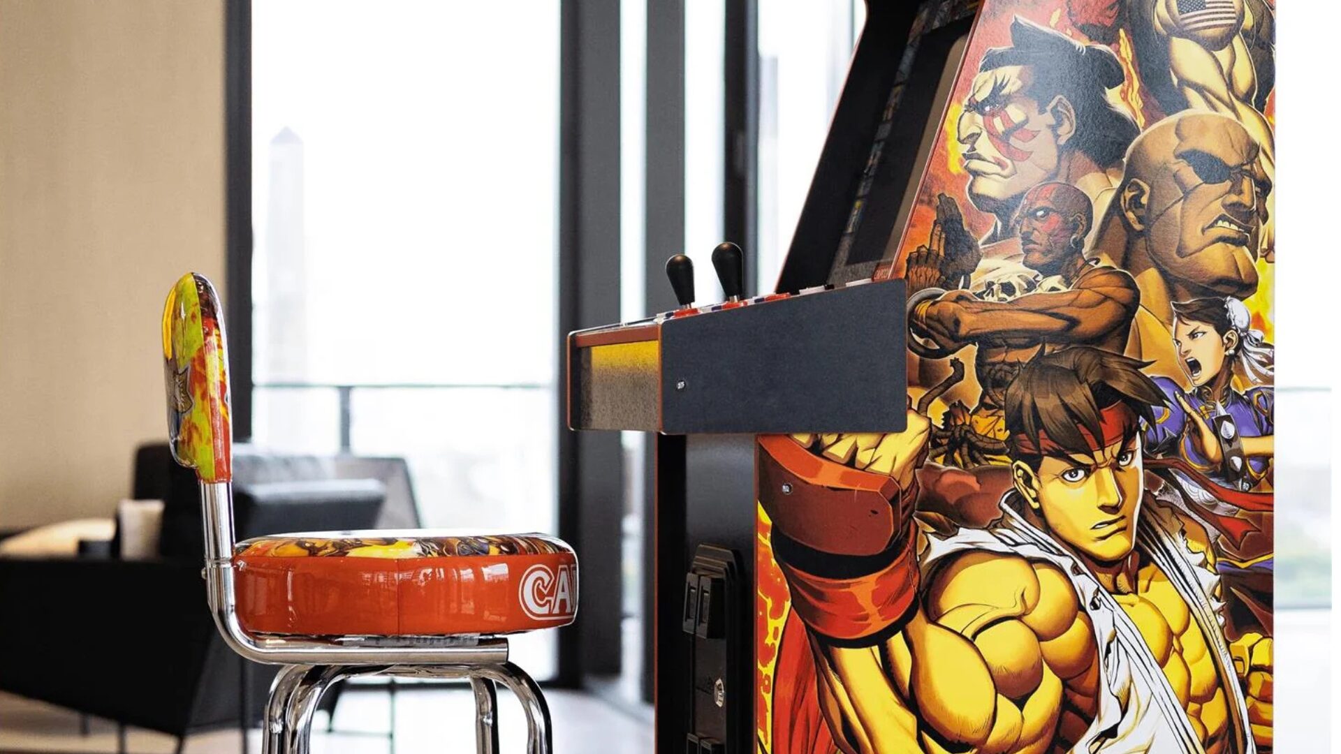 La borne s’accompagne d’un écran LCD couleur de 17 pouces de qualité, qui offre une image parfaitement adaptée aux jeux de l’époque, ainsi qu’un joystick et six boutons de chaque côté pour jouer à deux. Elle inclut plusieurs itérations de Street Fighter II Turbo ainsi que King of Dragons, le cultissime Strider, Progear, Battle Circuit, Super Puzzle Fighter, Saturday Night Slam Masters, Capcom Sports Club, Final Fight, Giga Wing, Captain Commando et Armored Warriors.