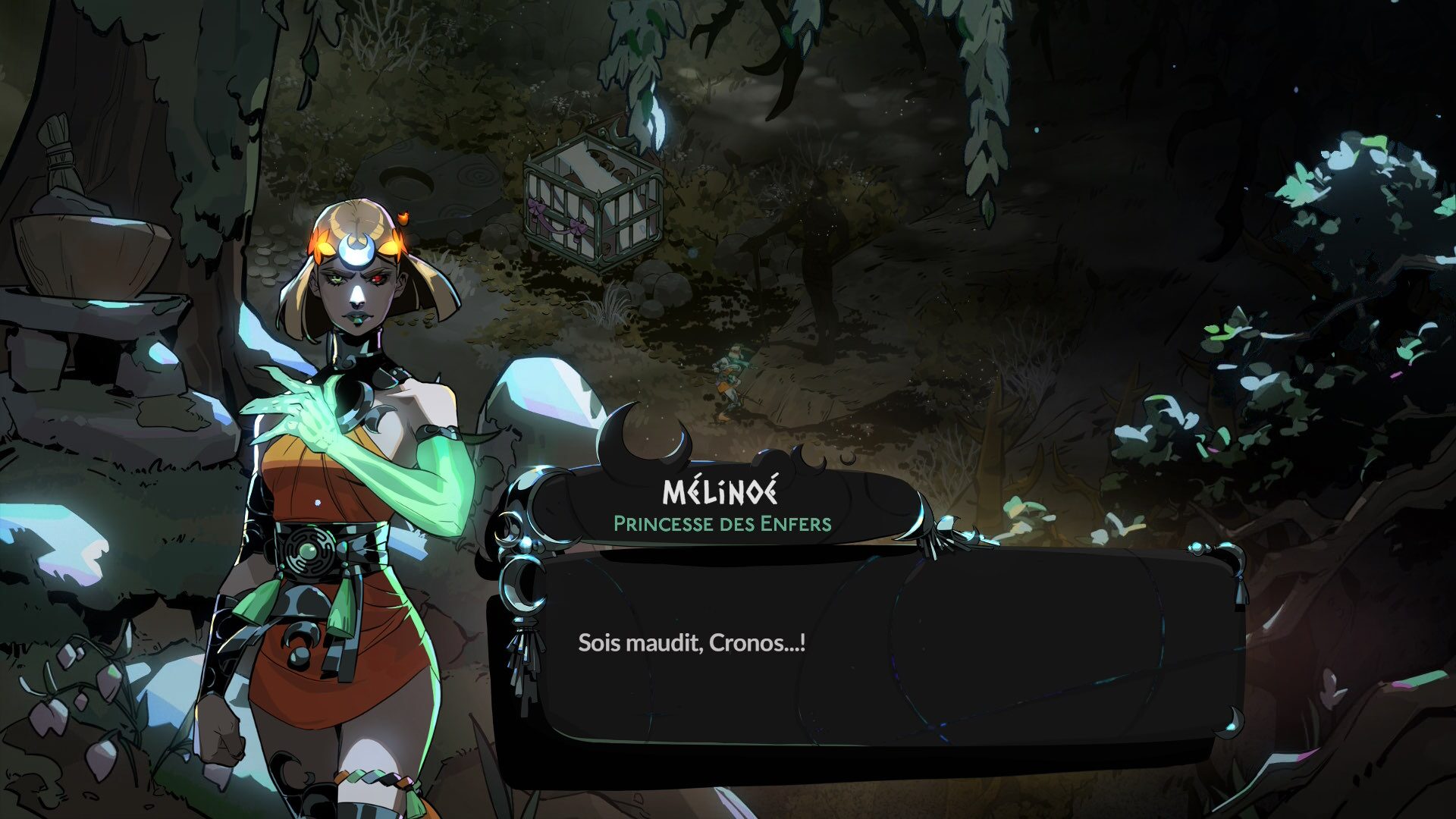 Dans Hades II, vous incarnez Mélinoé, fille de Hades et sœur de Zagreus, protagoniste jouable du premier volet. Son objectif ? Triompher de Cronos, le dieu du temps, antagoniste aussi charismatique que détestable, et dont la prise de pouvoir au détriment de Hades engendre le chaos dans les Enfers ainsi que dans l’Olympe. Au fil de votre progression, du hub de départ jusqu’aux boss de chaque biome principal, vous êtes amené à croiser de nombreuses divinités (Zeus, Héra, Poséidon, Aphrodite…) et personnages mythologiques (Ulysse, Narcisse, Icare, etc.). Chacun attribue aléatoirement des modificateurs de gameplay appelés bienfaits, et entre lesquels vous devez faire des choix qu’il va falloir assumer le temps de chaque partie.