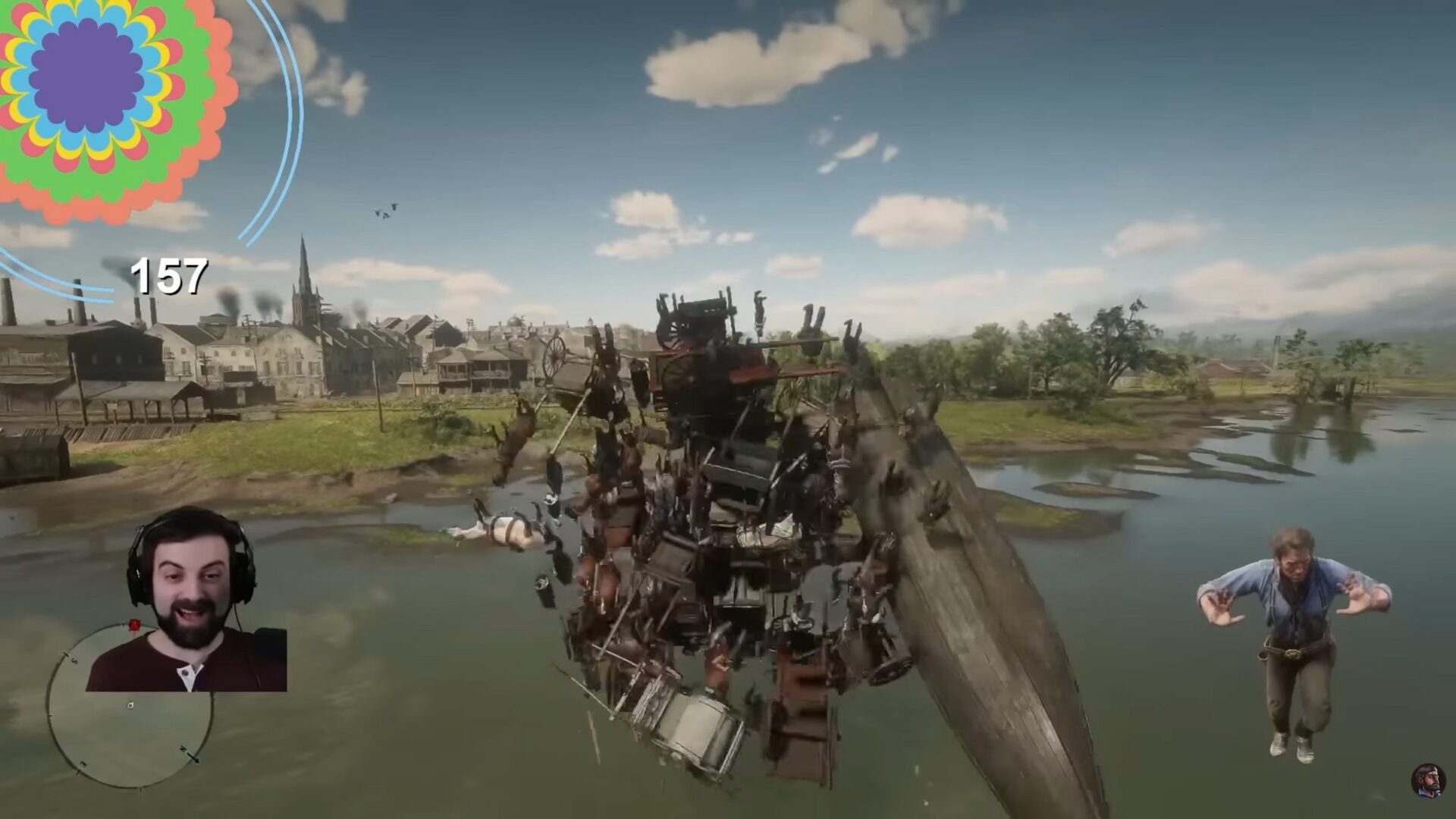Dans une vidéo partagée sur YouTube le 1er janvier 2026, le YouTubeur Blurbs montre sa création, tel Victor Frankenstein dévoilant son monstre à la face du monde. Le créateur présente un mod Katamari sur Red Dead Redemption 2, aussi fascinant qu’improbable. Tel le Prince de tout le Cosmos, Arthur Morgan déambule dans le jeu et amalgame en forme de boule tout ce qui se trouve sur son passage. Notre cowboy n’a aucune limite et attrape le mobilier urbain, les chariots, les villageois et les chevaux pour en faire une boule parfaite et élégante, jusqu’à défier les lois fondamentales de la gravité et de la physique.