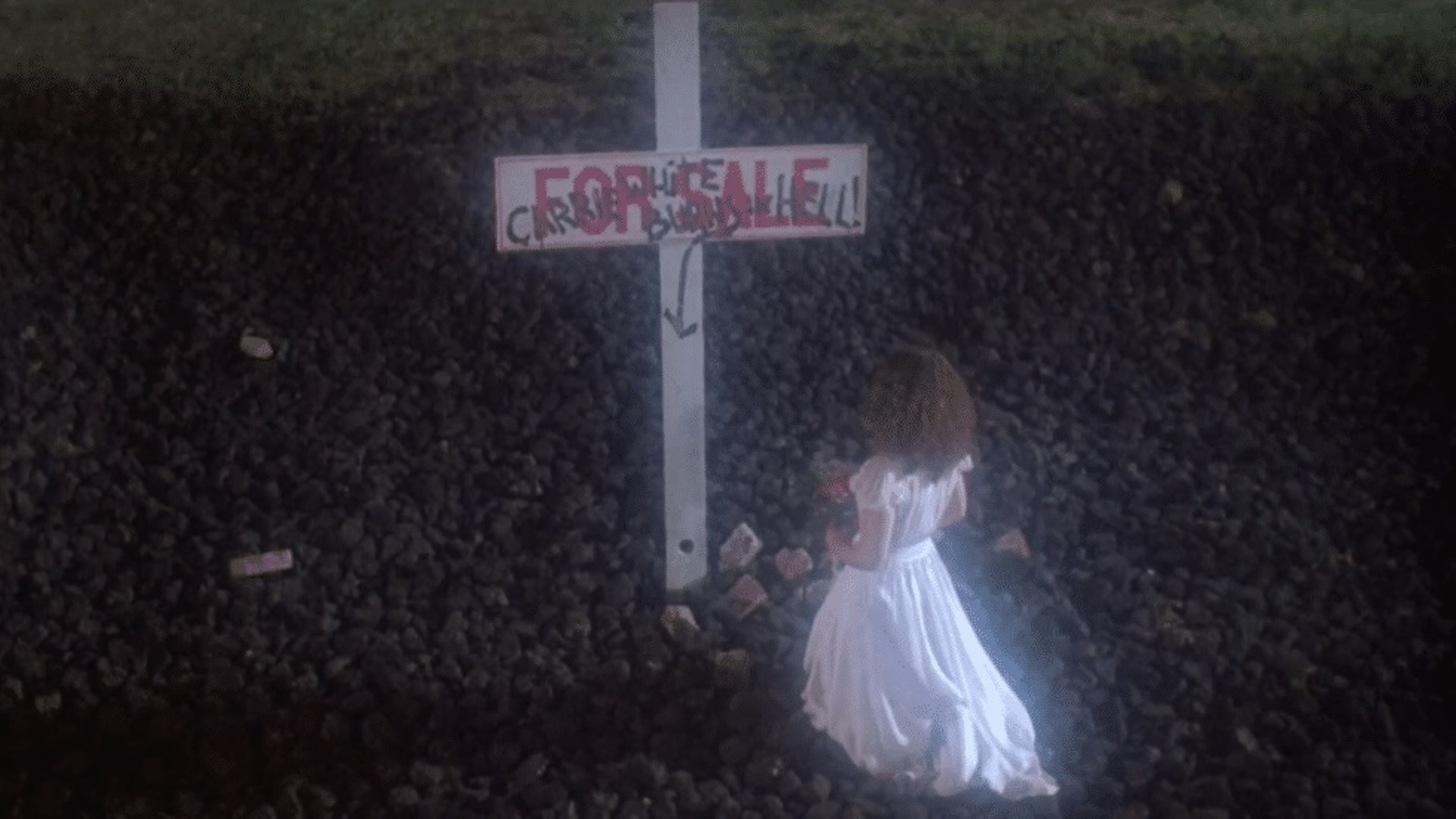 Cette scène fait écho à celle de la fin du film Carrie au bal du diable, classique horrifique réalisé par Brian De Palma, en 1979. Dans un rêve, Susan vient se recueillir sur la tombe improvisée de Carrie White, qui a été vandalisée. On peut y lire « Carrie White burn in hell ».