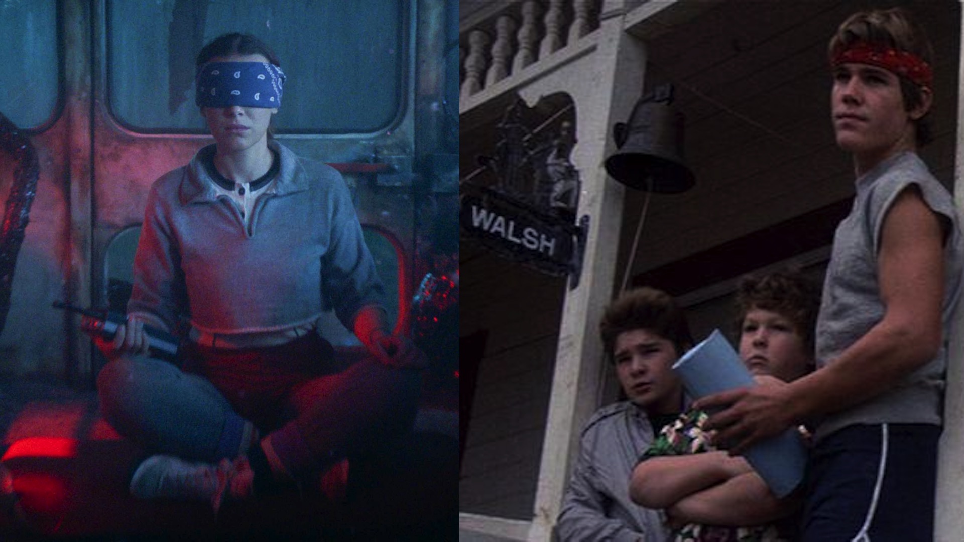 Il s’agit d’une réinterprétation du look de Josh Brolin, qui incarne Brand, le grand frère de Mickey dans le film culte. Amy Parris, la costumière de Stranger Things, a confirmé la référence et a révélé que Millie Bobby Brown fut d’abord réticente en recevant l’ensemble, avant d’être totalement séduite en l’essayant !