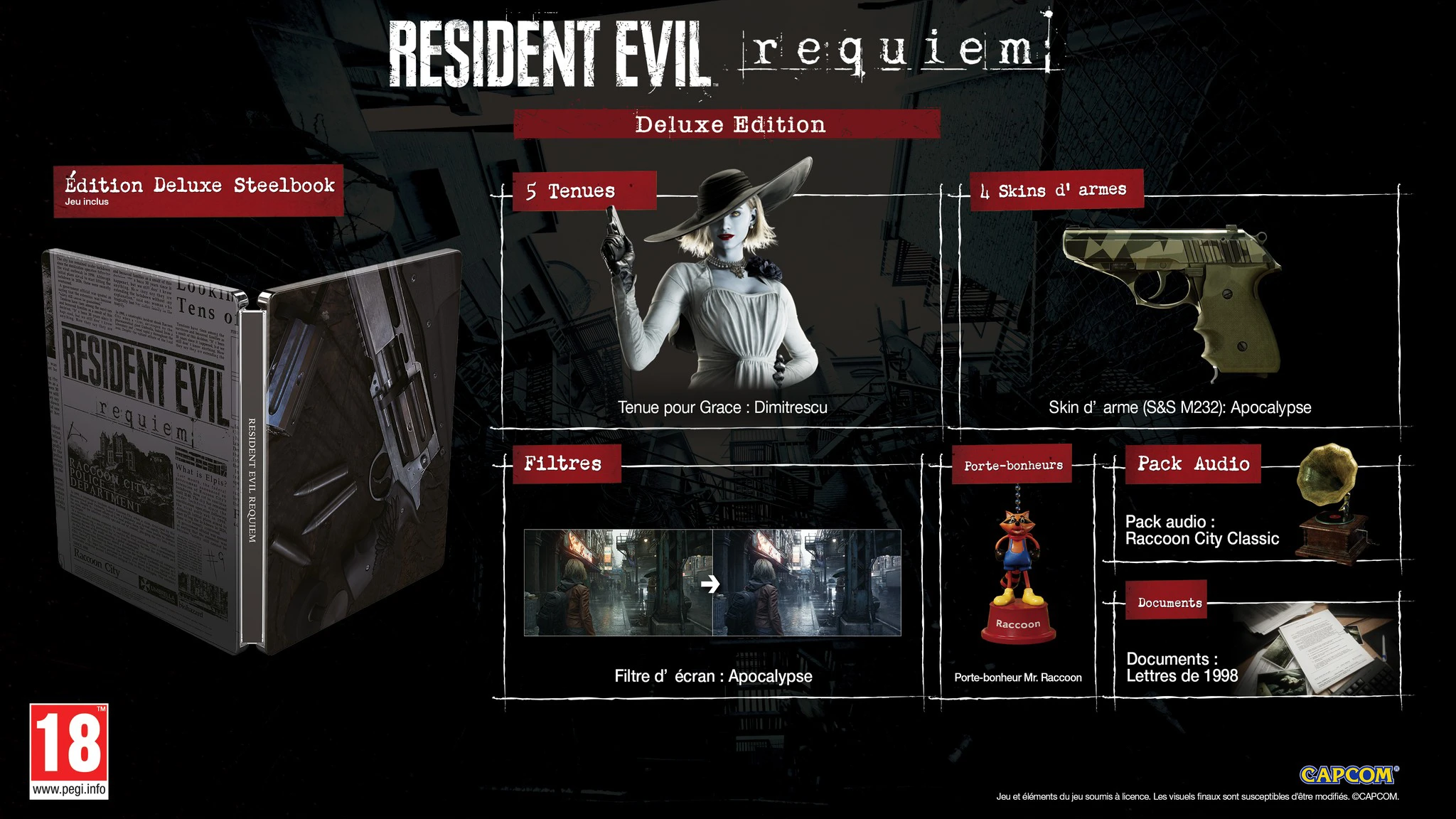 Resident Evil Requiem est un jeu vidéo de type survival horror développé et édité par Capcom. C’est le neuvième opus principal de la série. Sa sortie est prévue pour le 27 février 2026 sur Windows, PlayStation 5, Xbox Series et Nintendo Switch 2. Le jeu est vendu 79,99 € sur toutes les plateformes, mais il est possible de précommander l’édition standard à un meilleur prix :