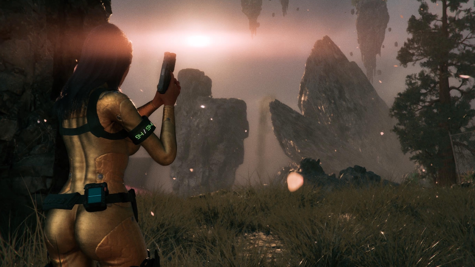 Si Violet démarre l’aventure avec peu de vêtements sur elle, elle récupère vite une tenue spéciale dotée d’une technologie lui permettant d’être temporairement invisible. N’allez pas imaginer toutefois que Code Violet a des allures d’expérience d’infiltration qui s’ignore. Les développeurs ont juste implémenté cet élément de gameplay sans aucune justification, comme tant d’autres choses sur lesquelles on peut tomber dans les environnements, en témoigne la direction artistique qui n’a ni queue ni tête et mélange absolument tout et n’importe quoi. À ce titre, on a encore un PTSD de ce tableau montrant une femme tenant un bébé dinosaure comme son enfant. Du mauvais goût au milieu de références mieux senties (Alien, Jurassic Park…). Captain, on n’est qu’en janvier…