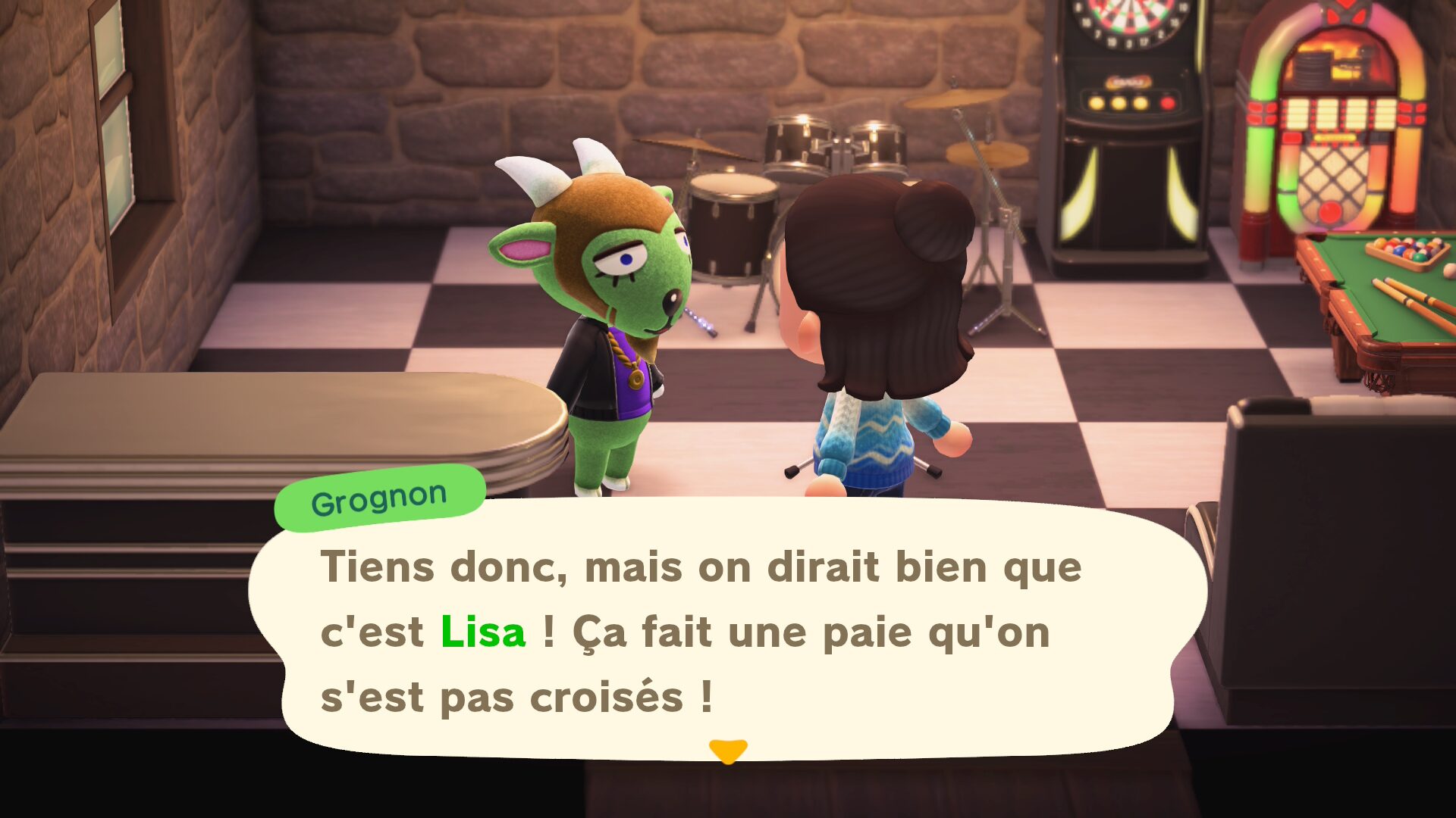 Bon, la venue d’Irène m’a surtout fait la regretter — d’autant plus que Grognon continue de s’accrocher à mon île comme une moule à son rocher. Mais au-delà de ce traumatisme personnel, cette nouveauté remet surtout en question toute la logique esthétique du jeu. À quoi bon avoir englouti des milliers de miles Nook à la recherche de la perle rare, si vos anciens voisins mal-aimés peuvent désormais revenir, l’air de rien, sillonner les rues de votre île ? La bonne nouvelle, c’est que leur séjour semble relativement court. Encore faut-il accepter de les recroiser.
