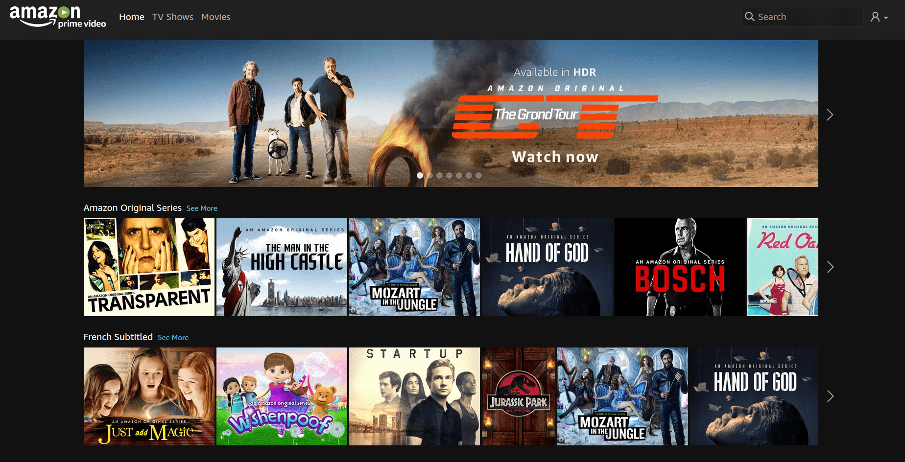 Amazon France a souhaité clarifié la nature de son catalogue : il sera composé de milliers de films et de séries télévisées de grandes chaînes, ainsi que de tous les contenus Amazon Original.