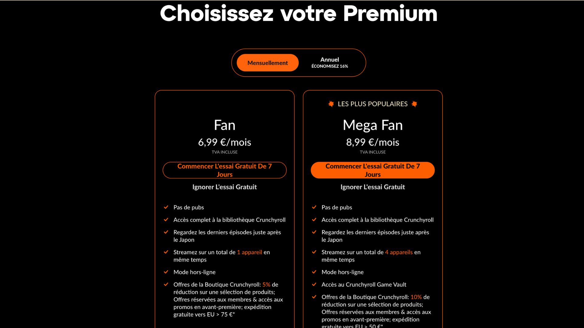 Quels sont les nouveaux prix sur Crunchyroll ?