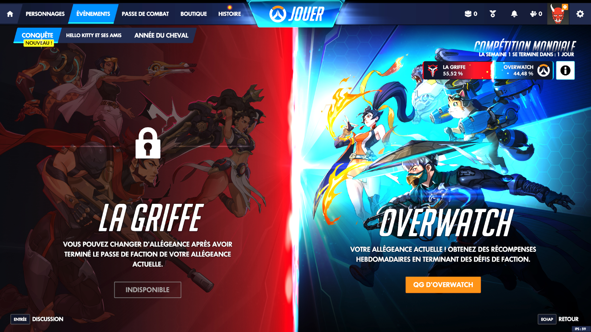 Un mot enfin sur l’évènement méta de cette saison 1 : Conquête. Durant cinq semaines, les joueurs doivent choisir leur camp entre Overwatch et la Griffe. Si l’aspect communautaire est plaisant, c’est surtout une aubaine pour les collectionneurs. Le système est généreux et permet d’accumuler un butin impressionnant simplement en jouant. Entre les 94 coffres à débloquer (un volume assez impressionnant quand on y pense), les objets ornementaux et le modèle légendaire d’Écho, on sent une réelle volonté de récompenser l’investissement des joueurs — un vrai luxe pour un free-to-play qui, pour une fois, semble accorder presque autant de crédit à vos heures de jeu qu’à votre carte bleue.