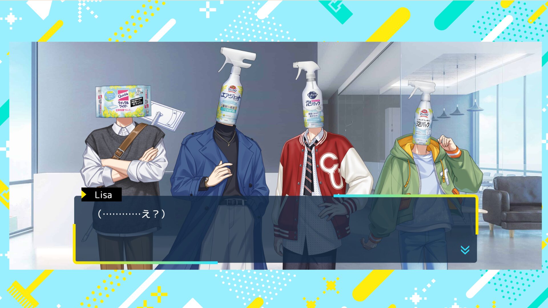 Au diable donc, le mythique Amour Sucré. Ce visual novel — un roman graphique interactif — disponible depuis le 18 février 2026 vous permet d’incarner un producteur débutant chargé d’interviewer et d’accompagner un nouveau groupe d’idoles. La particularité ? Ses membres sont des personnifications de produits ménagers bien réels du géant industriel japonais Kao Corporation (qui existe vraiment).