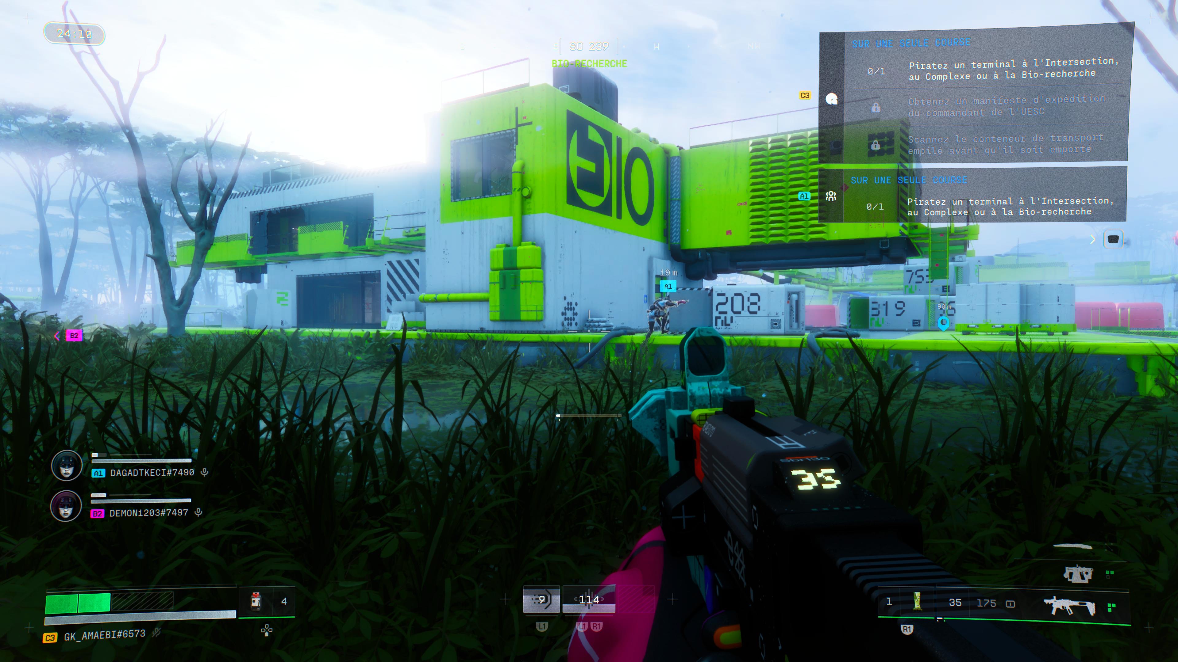Il y a d’abord ces menus, ces systèmes, ces myriades d’items aux noms et fonctions incompréhensibles qui s’accumulent dans un inventaire pas très lisible… J’étais noyé sous les instructions, les chiffres, les concepts… Un enfer. Pourtant, le principe de base est limpide : on est téléporté sur une planète en phase de colonisation par les Humains et on dispose de vingt minutes pour arpenter une des trois très vastes maps pour y dénicher des armes, des objets précieux et réussir quelques objectifs pour gagner des points d’XP avant de filer vers un point d’extraction et crier « téléportez-moi, Scotty » pour rentrer au bercail avant de recommencer, encore, encore et encore.