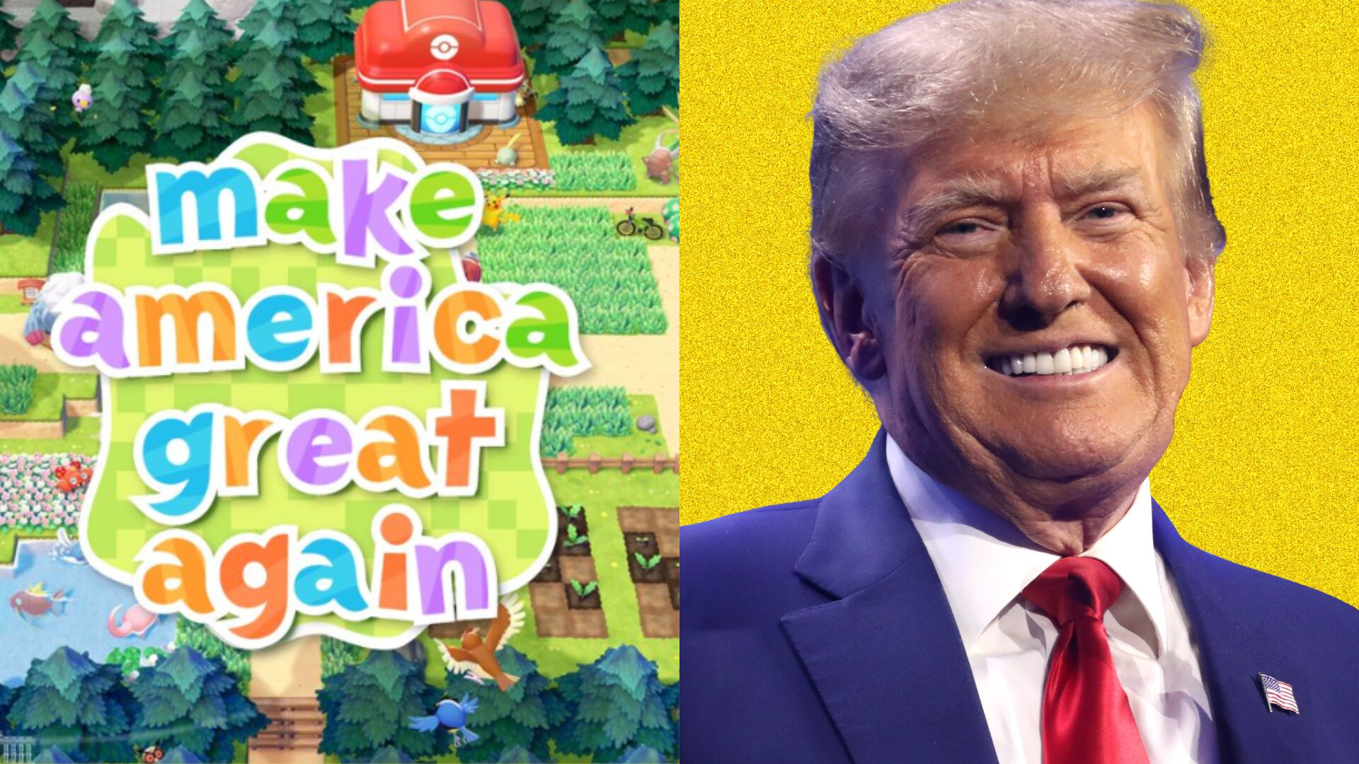 Le 5 mars 2026, le camp Trump s’est de nouveau attaqué à la licence : le compte X de la Maison-Blanche a ainsi publié une image issue du jeu Pokémon Pokopia, sur laquelle son nom a été remplacé par leur mantra phare « Make America Great Again ». La Maison-Blanche n’a clairement pas perdu de temps : le très attendu jeu de simulation de vie sur Switch 2 est sorti le jour même de la publication. Le post a rapidement fait réagir les internautes et suscité une polémique, à laquelle The Pokémon Company a fini par répondre.