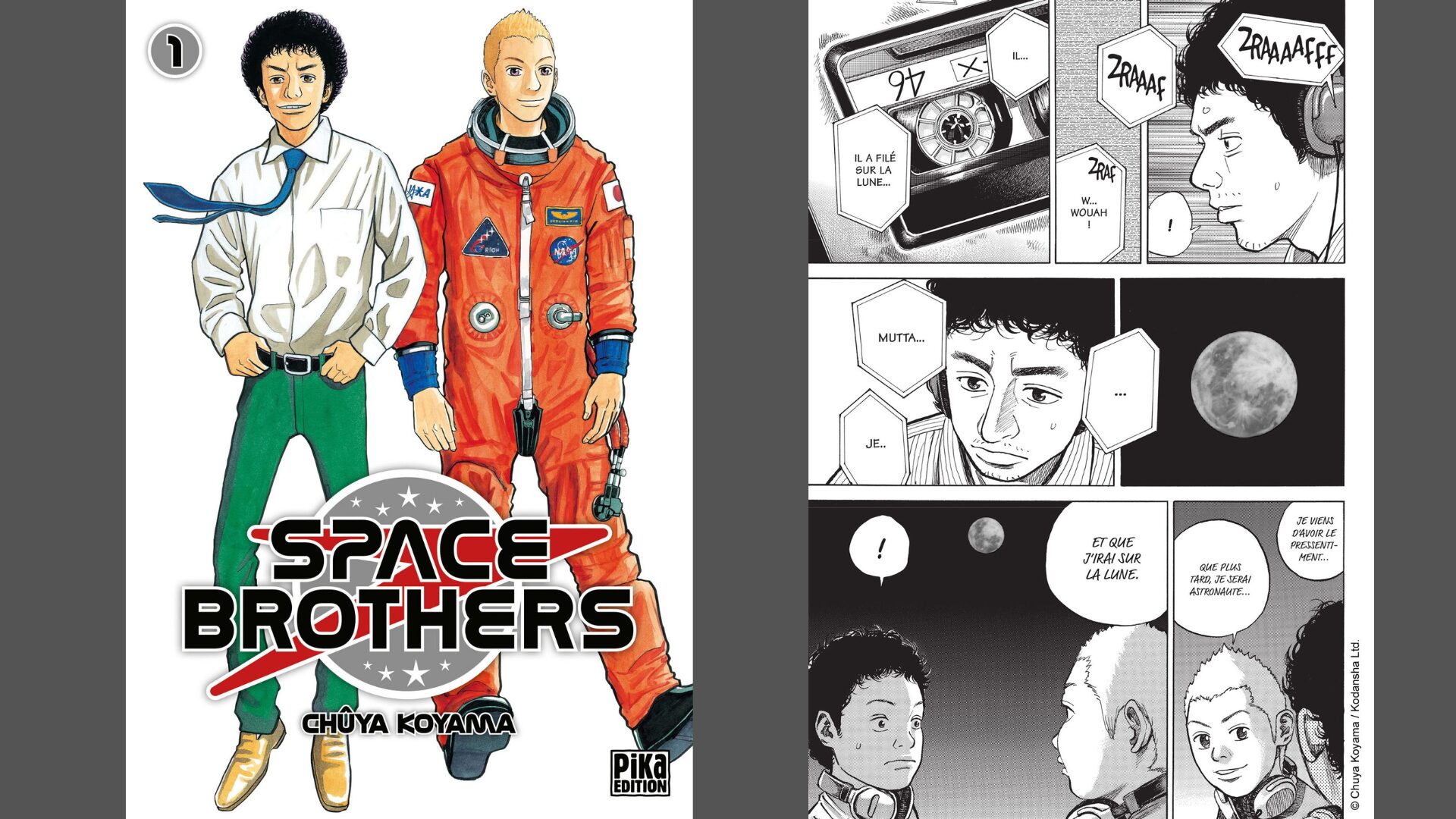 L’œuvre n’appartient pas totalement au genre de la science-fiction, mais n’en est pas moins une belle introduction à celui-ci. La crédibilité scientifique et le réalisme du manga permettent de parler du défi d’être astronaute d’une manière rarement abordée dans la bande dessinée. Le récit n’en oublie pas d’être profondément humain, en particulier le duo fraternel central et leurs rêves d’enfance. Space Brothers compte actuellement 45 volumes, édités en France par Pika. La fin du manga est prévue pour cet été au Japon.