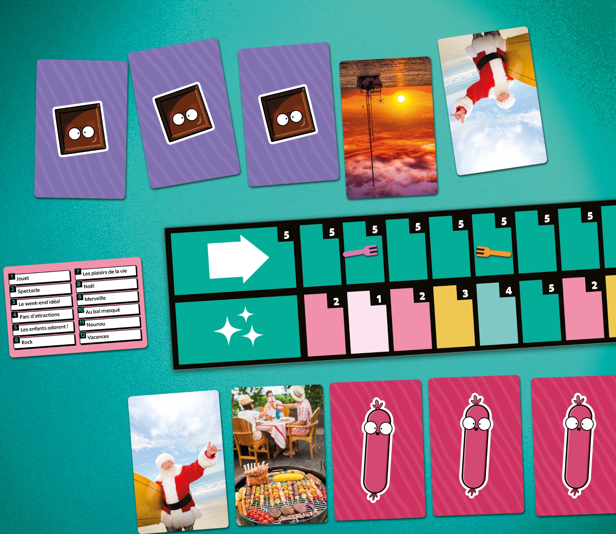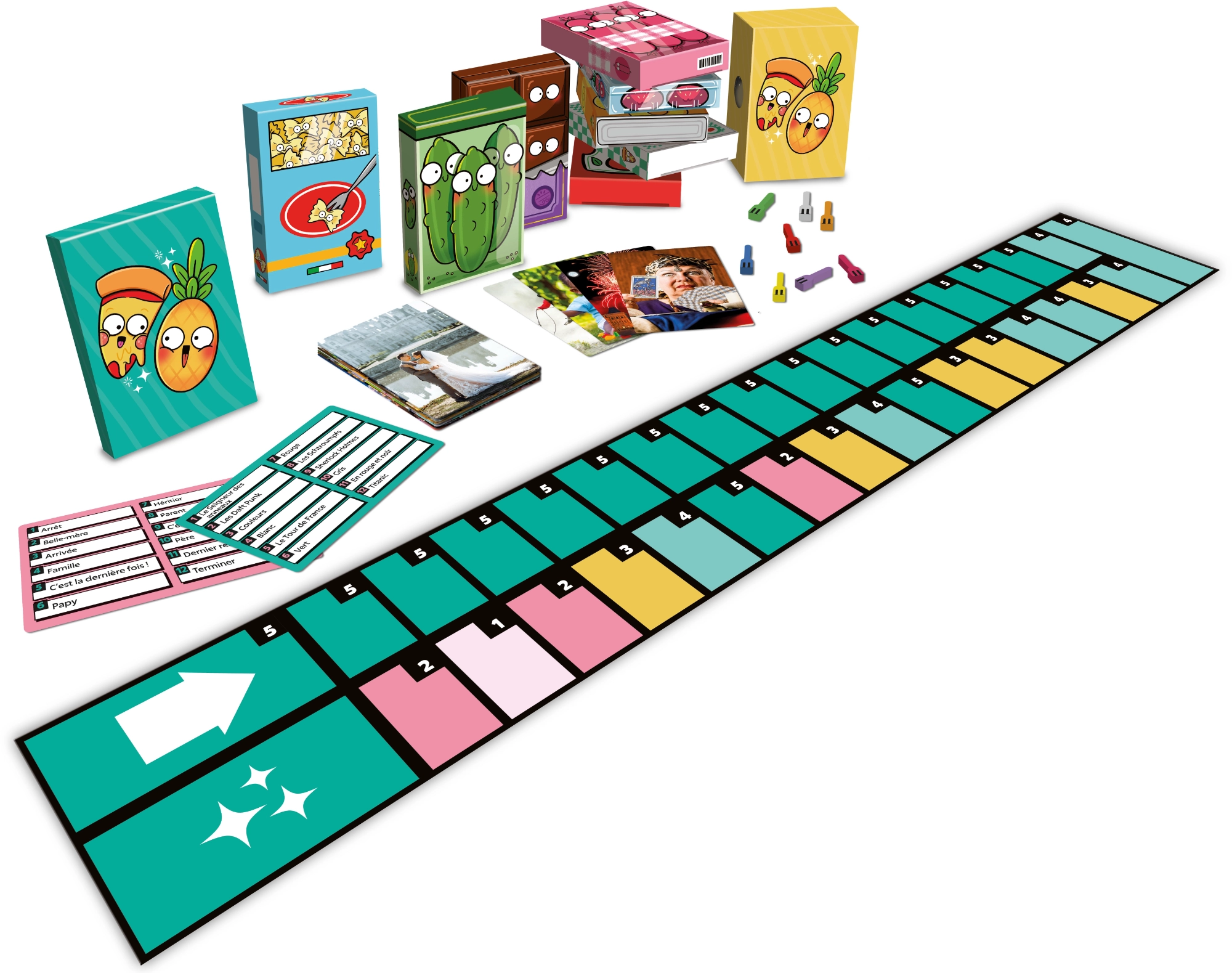 Chaque joueur reçoit un paquet de 42 cartes, tous identiques et composés des mêmes photos. À chaque manche, un thème est tiré au hasard : « Cadeau », « Le Seigneur des anneaux », « Les enfants adorent », « Mariage », etc.