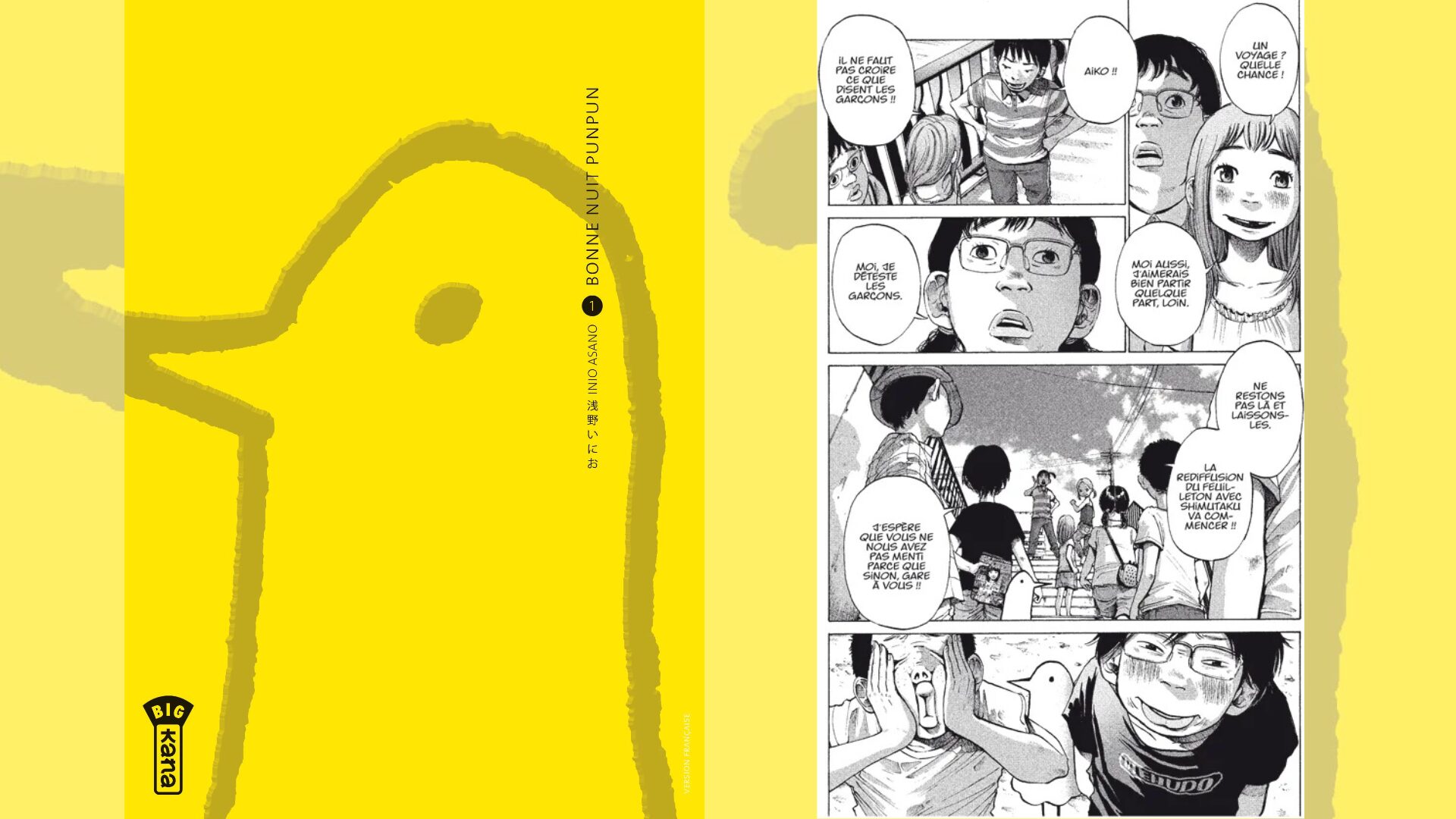 Attention : Bonne Nuit Punpun est un manga particulièrement dur, qui aborde des thèmes graves et sensibles. Son récit, à la fois sombre et psychologiquement éprouvant, peut se révéler déstabilisant pour certaines lectrices et lecteurs. Sous ses airs de récit d’apprentissage, le manga d’Inio Asano traite d’une manière radicale de la dépression, mais le fait avec une poésie de l’absurde qui prend souvent par surprise. Une oeuvre surprenante qui marque au fer rouge.