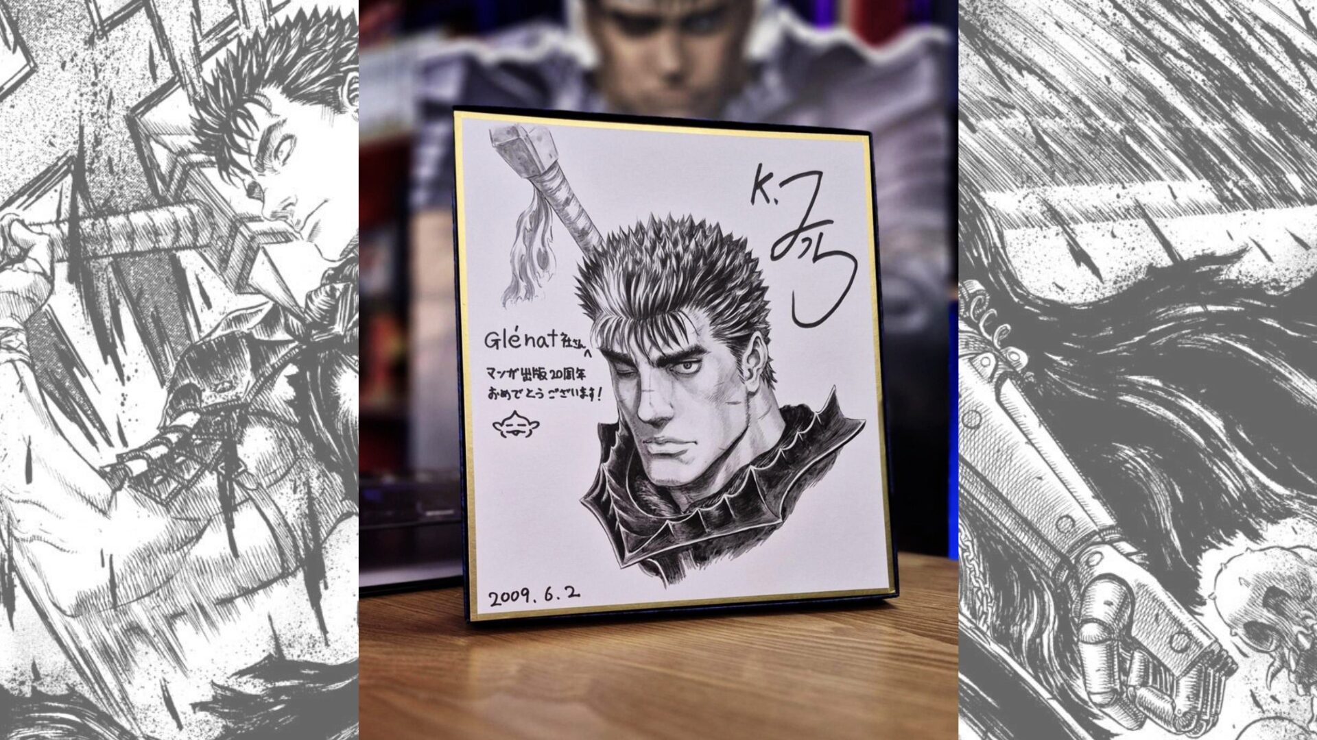 Cette édition collector comprend le tome 43 de Berserk, accompagné d’une couverture cartonnée. Elle inclut également une reproduction du shikishi que Kentarō Miura avait dédicacé pour Glénat, ainsi qu’un coffret conçu pour se transformer en présentoir afin d’exposer cette illustration. Sa sortie est prévue pour le 1er juillet 2026.