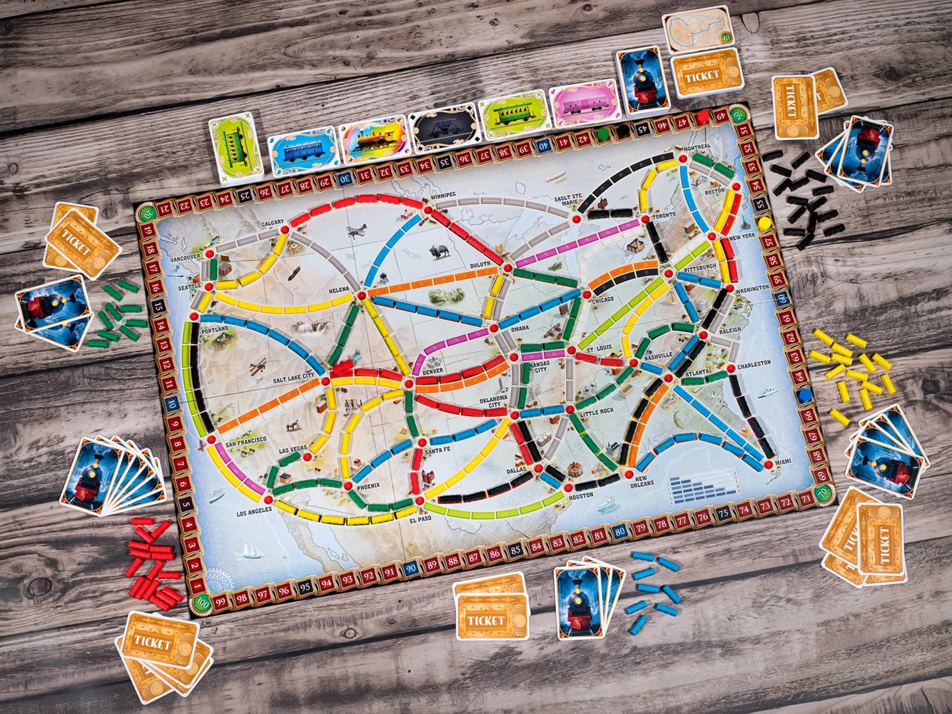 Le but est simple : relier des villes pour marquer des points. À chaque tour, soit vous piochez des cartes, soit vous utilisez vos cartes pour poser vos wagons sur les trajets de la couleur correspondante. Sorti en 2004, son succès ne faiblit pas. Il existe de nombreuses autres boîtes et extensions, pour renouveler l’expérience avec de nouvelles règles et de nouvelles possibilités.