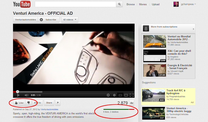 Sur YouTube, Google affiche carrément une jauge, qui indique le nombre d'internautes qui ont "aimé" une vidéo, et ceux qui ne l'ont "pas aimé". La note est utilisée par le moteur de recherche interne du site, lorsque le visiteur souhaite parcourir les vidéos les mieux notées :