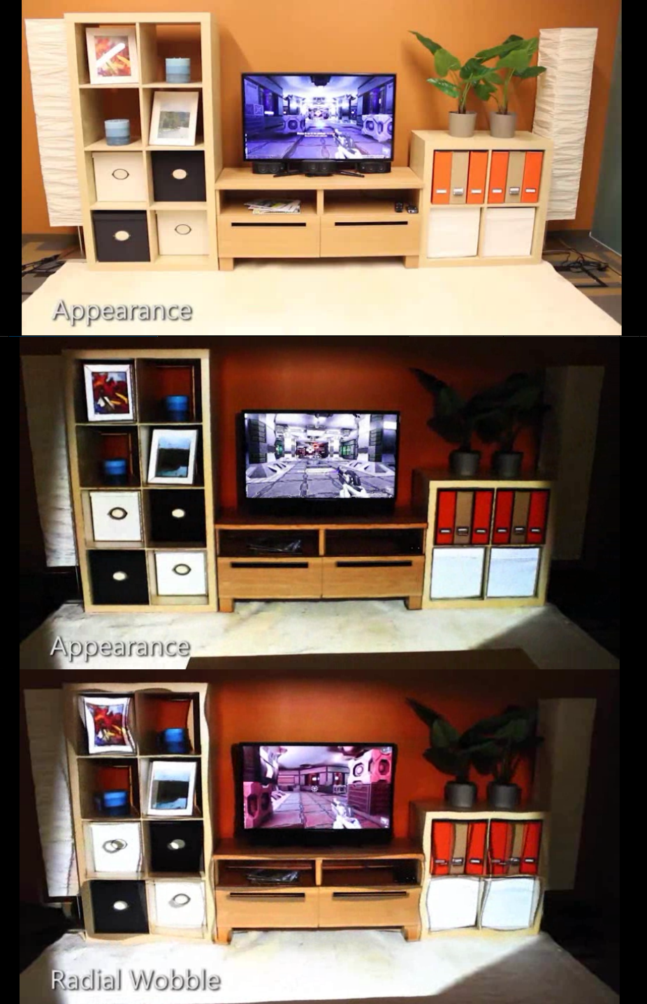 Le concept a ainsi des applications ludiques inédites très intéressantes, en permettant par exemple d’afficher le score au dessus du téléviseur, de donner l’illusion que les meubles tremblent au moment d’une explosion, de « faire tomber » un objet virtuel sur le sol du salon, etc. La caméra peut même filmer la pièce et en modifier l’apparence, pour la faire correspondre au rendu graphique du jeu. S’il neige dans un jeu, la neige peut s’accumuler au dessus de certains objets, et sur le sol au bas des meubles.