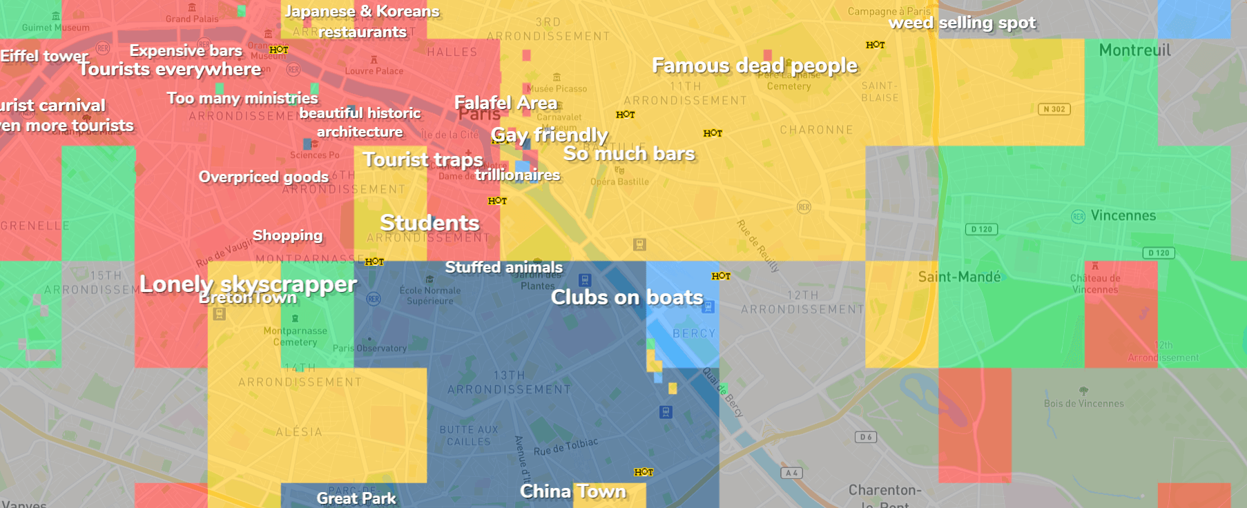 Deux mois après son lancement, retourner sur la carte crowdsourcée est un vrai régal : les utilisateurs ont largement cartographié Paris, mais également les villes de province. Ainsi, vous pourrez trouver sur le site de nombreux conseils et astuces pour mieux connaître vos nouveaux quartiers et éviter les normies, population typiquement ronflante et familiale, mais aussi les suits — les tristes pingouins de bureau.