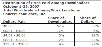 On a beaucoup spéculé sur la somme consentie à Radiohead pour le téléchargement d’In Rainbows. Selon les sources, on parlait d’un quart à un tiers n’ayant rien payé, et le reste qui aurait déboursé une moyenne de 5,75 €. Aujourd’hui, c’est comScore qui s’y colle. Et lorsque l’organisme s’attaque à la prise de température d’Internet, on peut lui faire relativement confiance. Pendant que les journaux tentent de proposer des estimations sur les déclarations de quelques milliers de fans, comScore dispose d’un pannel de deux millions d’internautes qui ont concédé à l’organisme le droit de surveiller leur comportement sur Internet.