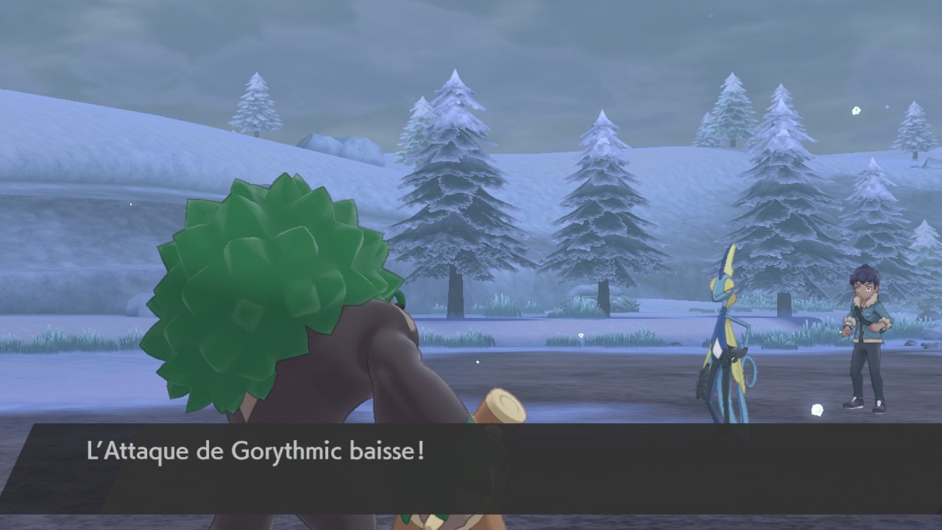Pokémon Épée et Bouclier décolle donc lentement, et ce n’est qu’arrivés aux Terres Sauvages que l’on commence réellement à prendre la mesure de tout son potentiel. La liberté tant convoitée se matérialise jusque dans l’affichage : cette toute nouvelle zone de la carte fonctionne comme un mini-monde ouvert, où il est possible de bouger la caméra (Joy-Con de droite) pour gagner différents angles de vue, alors que le reste du jeu est figé sur un plan fixe (on peut bouger avec le Joy-Con de gauche, mais la caméra nous suit automatiquement sans que l’on puisse l’orienter).