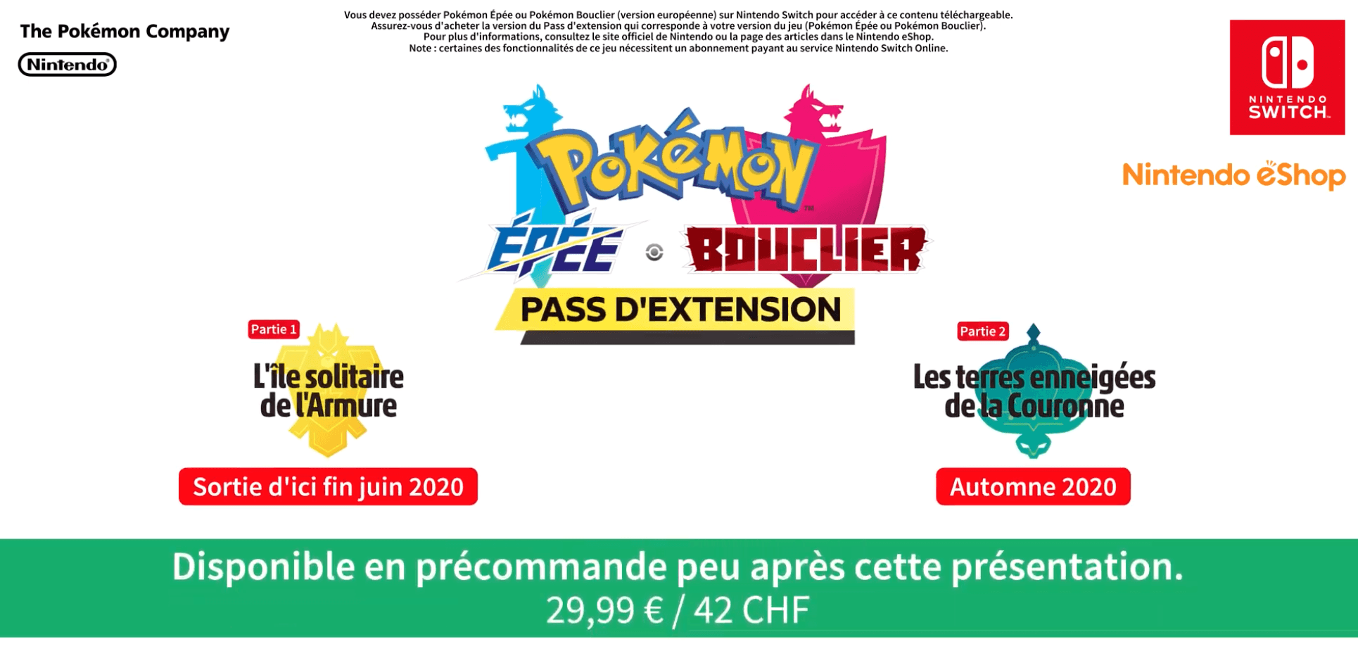 Le Pass d’Extension est disponible en pré-commande dès à présent sur le site de Nintendo. Faites toutefois bien attention à prendre le pass qui correspond à la version de Pokémon que vous avez : le pass Épée est différent du pass Bouclier.