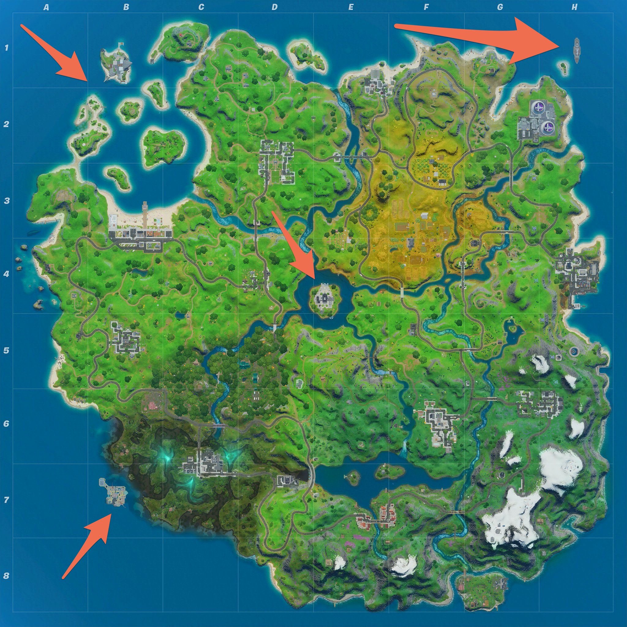 Comme certaines images avaient pu le suggérer, la carte de l’île du jeu a été légèrement modifiée. Ce n’est pas flagrant au premier coup d’œil, mais lorsqu’on y regarde de plus près, il a tout de même plusieurs changements. Nous les avons indiqués avec des flèches ci-dessous.