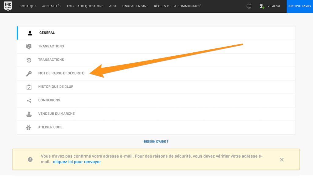 Pour pouvoir configurer la double authentification, il faut d’abord vérifier son adresse mail, c’est-à-dire fournir un code qu’Epic Games vous aura envoyé par mail, à l’adresse liée au compte.