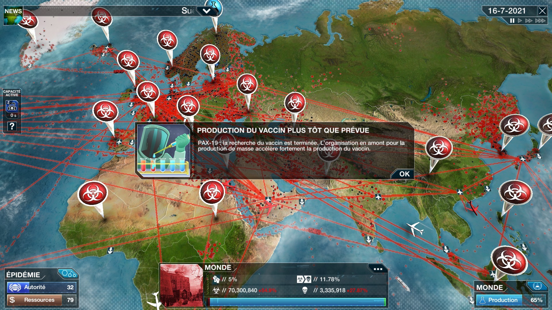 L’an dernier, plusieurs jeux vidéo sont revenus sur le devant de la scène en raison de la pandémie de coronavirus. Plague Inc fut l’un d’entre eux. Il s’agit d’une simulation basée sur la propagation d’une maladie mortelle. À la demande des joueurs, le studio Ndemic Creations avait promis un nouveau mode qui permettrait de combattre une épidémie — soit l’objectif inverse. Il est disponible gratuitement sur Steam depuis le 28 janvier.