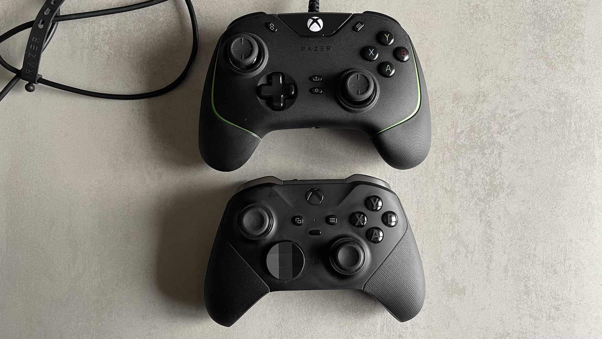 Manette Razer Wolverine V2 (en haut) versus manette Xbox Series 2 (en bas)