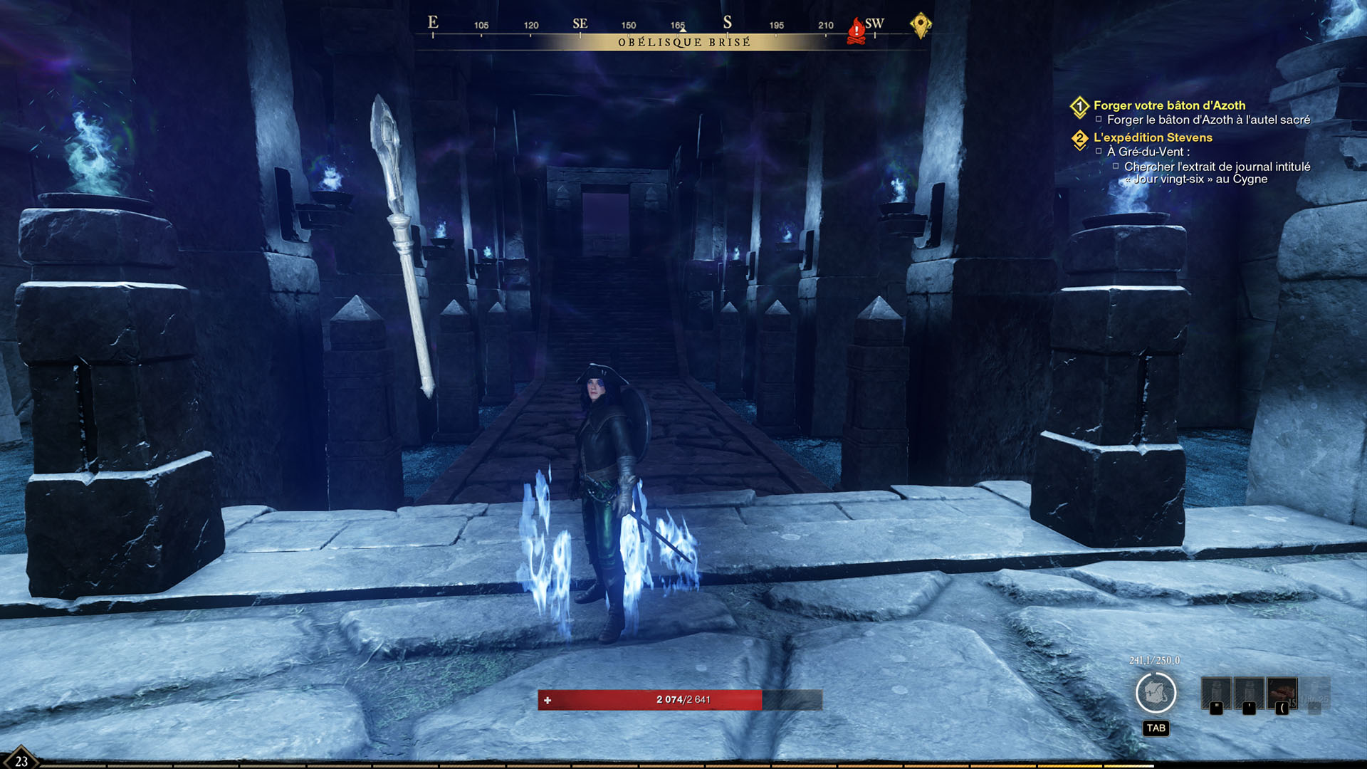 L’absence de monture dans le jeu (espérons que cela changera, car je ne dois pas être le seul joueur à rouspéter face à ces 417 314 pas que l’on doit faire à chaque fois que l’on va quelque part) ainsi que la nécessité de dépenser une ressource pour accéder aux points de voyage rapide font que l’on se retrouve très vite à utiliser une touche essentielle, capitale, indispensable : la course automatique. Et c’est un petit miracle. Qu’est-ce qu’on court dans ce jeu !