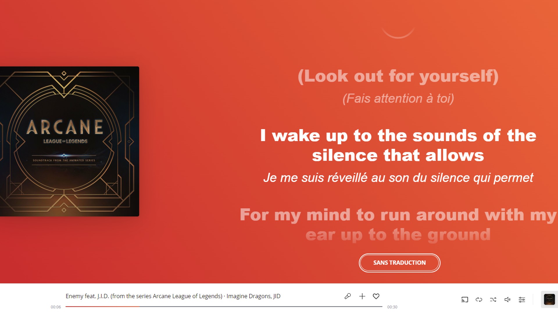 La traduction va simplement s’ajouter au texte des paroles — en plus petit, en dessous de chaque vers.